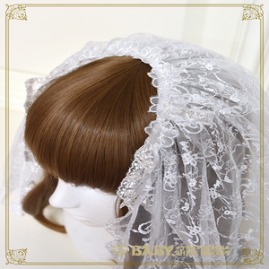 A veil with glittering lame lace and crystals, studded with flower motifs♡