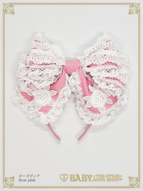 This gorgeous ribbon headband is decorated with lots of torchon lace and rose motif chemical lace,