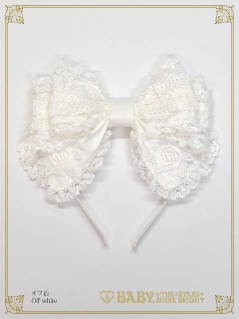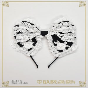 トーションレ―スと薔薇モチーフケミカルレースが沢山あしらわれた、豪華なおリボンカチューシャは