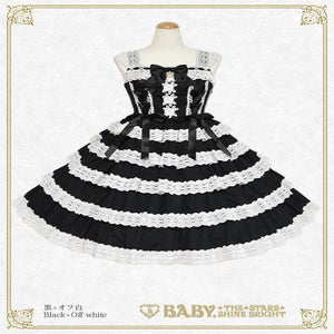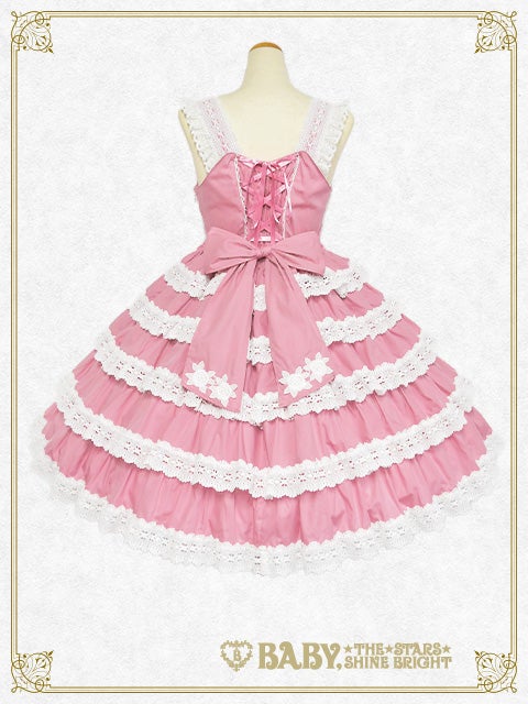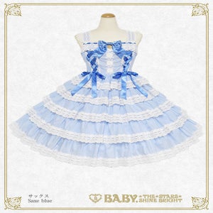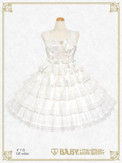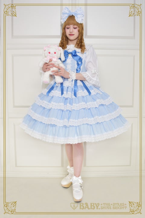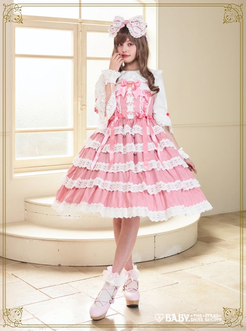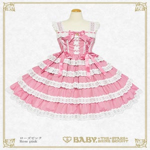The dress is decorated with gorgeous five-tiered ruffles, torchon lace, large rose motif chemical lace, and shiny satin ribbons; making it gorgeous and elegant just like a princess♪