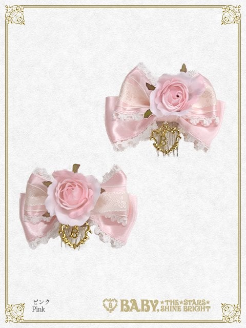 クララローズをあしらった2個組のリボンコームです。