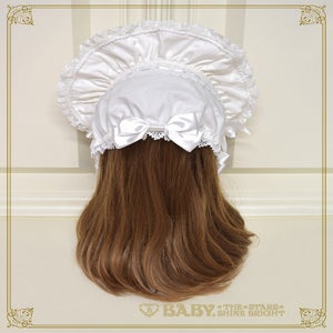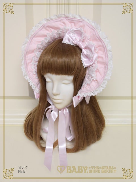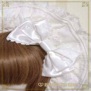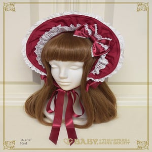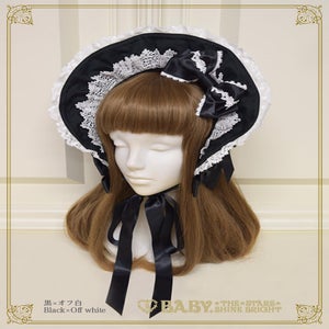 This bonnet features a wired brim that allows you to shape it beautifully, and is decorated with torchon lace and satin ribbons♡