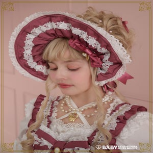 This bonnet is inspired by a Rococo princess, with a wired brim and luxuriously decorated with rose motif chemical lace♡