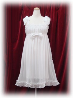 [Brand comment] The waist ribbon cannot be removed. It is worn by tying the ribbons on the shoulders. It can be put on and taken off with buttons, so it can also be worn as a halter neck. Chiffon fabric and tulle lace. Shirring at the chest.