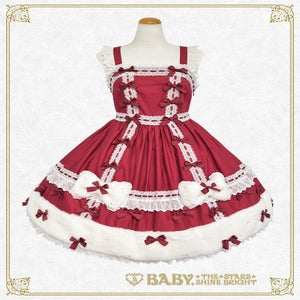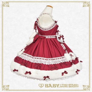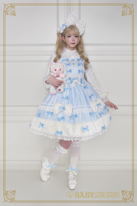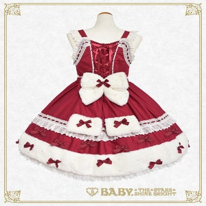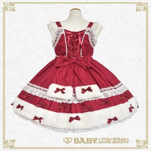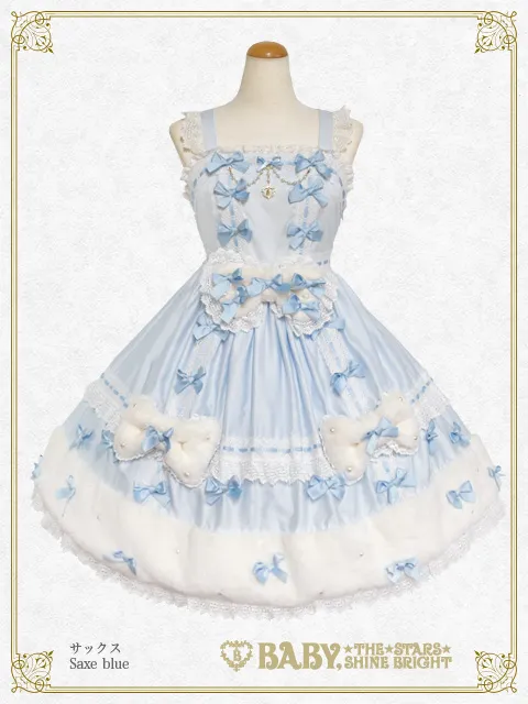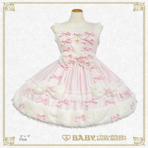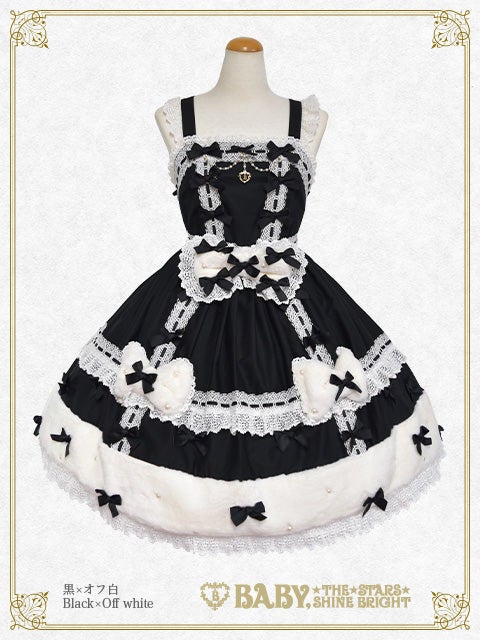 This jumperskirt is super cute♡ with its eye-catching fur ribbon motif and hemline, as well as the dull satin ribbons and pearl decorations scattered all over; making it perfect for adding a touch of glamour to any autumn/winter outing♪