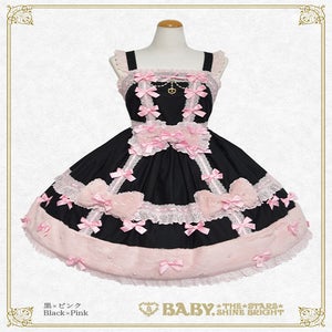ひときわ目を引くファー素材のおリボンモチーフや裾飾り、全体に散りばめられたダルサテンリボンやパールのデコレーションがとってもCUTE♡な、秋冬のお出掛けを華やかに演出してくれるジャンパースカートです♪