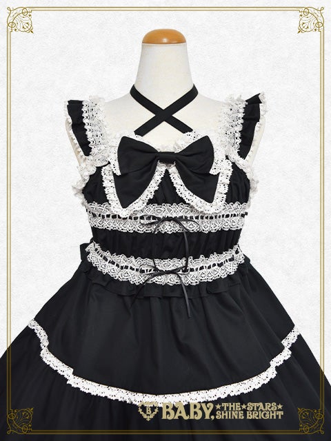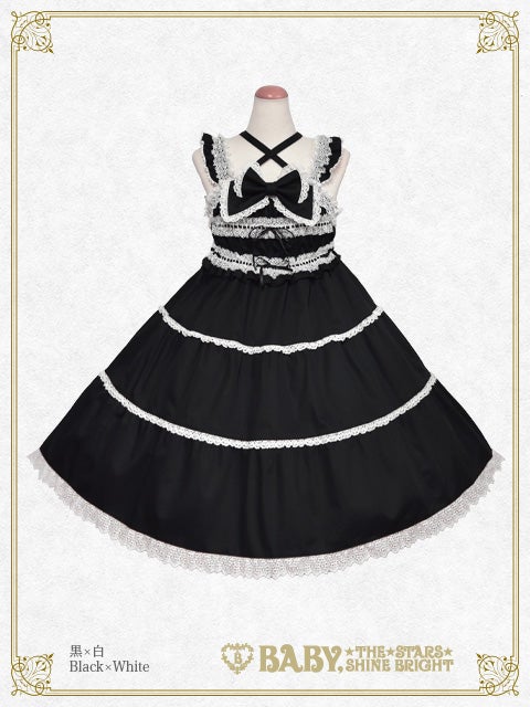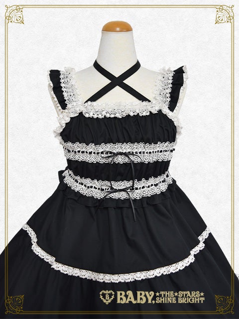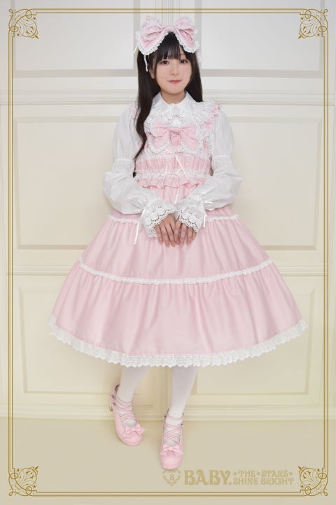 This classic babydoll jumperskirt features a tiered skirt and plenty of shirring and frills on the bodice and shoulder straps, making it adorable♪
