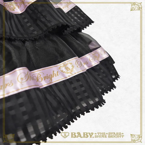 The limited edition color of the 'Sweet Best Wishes JSK' is a soft and voluminous jumperskirt made of a combination of dot dobby, organza, and checked fabrics adorned with a ribbon featuring Baby's original logo. It comes with a ribbon clip and is once again available exclusively at the Ikebukuro store♪