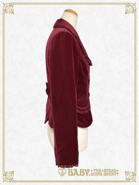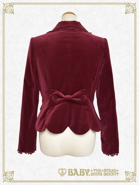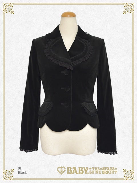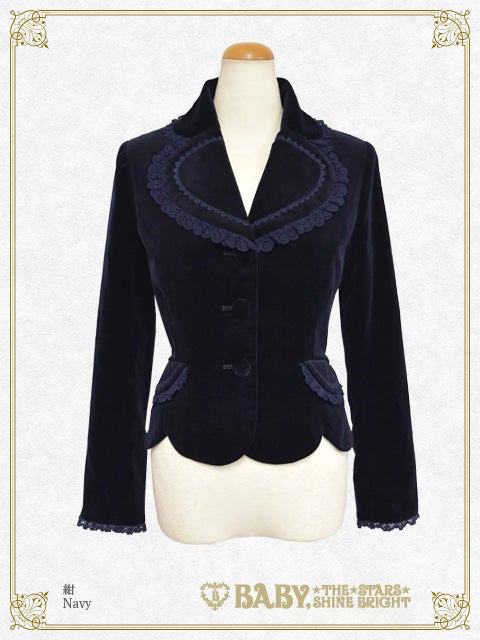 This jacket is made of luxurious velvet and features adorable heart-shaped chemical lace and a scalloped hem♡