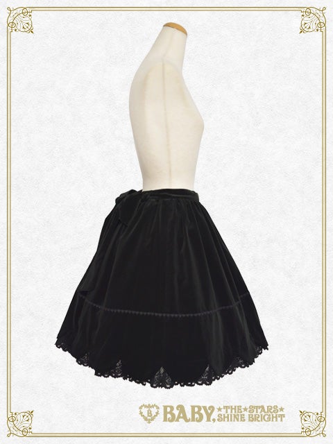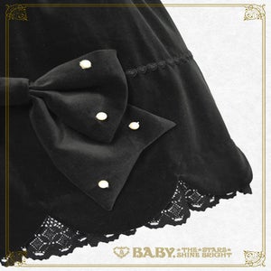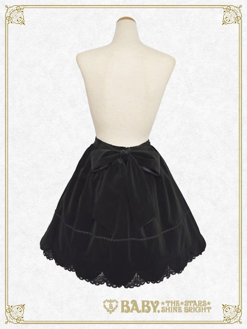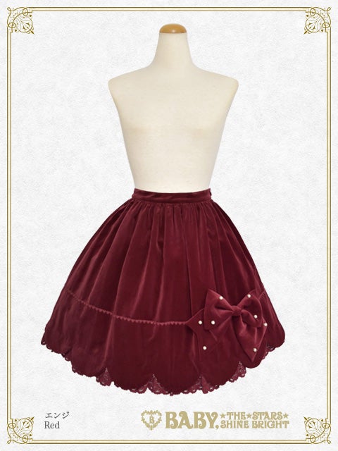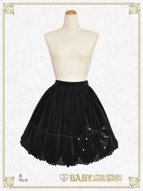 This skirt is made of luxurious velvet and features a striking large ribbon with pearls♡