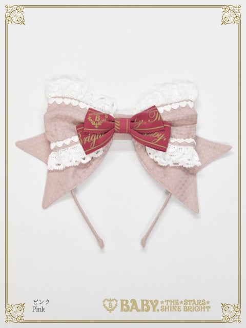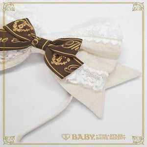オリジナルのBABYロゴ入りグログランリボンをあしらったおリボン型カチューシャは、ワイヤー入りですのでお好みのシルエットに整えてお召し頂けます。