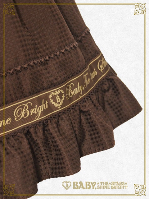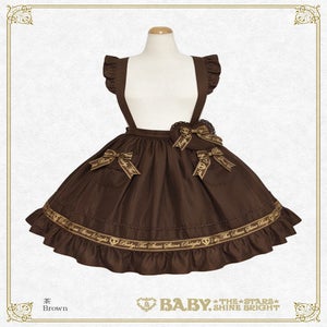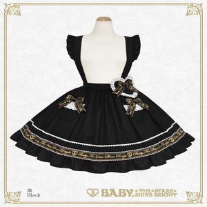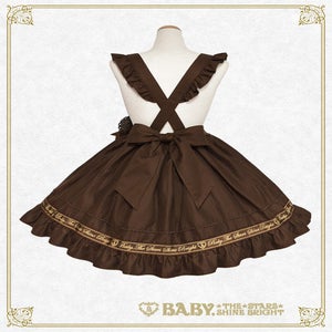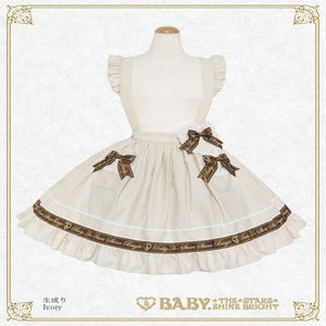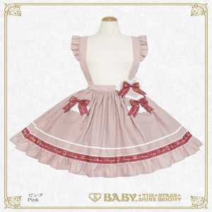 The skirt has removable shoulder straps made of the same material, pockets decorated with Baby logo ribbons, and adorable heart decorations that look sweet and cute no matter where you wear it!