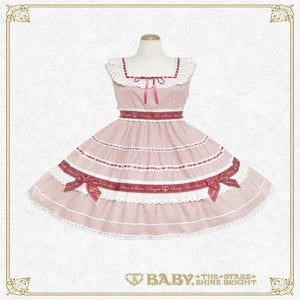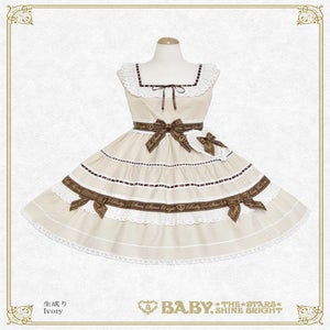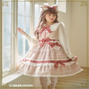 This jumperskirt is made of soft, gentle-to-the-touch fabric with a waffle-like weave, and the tiered skirt is decorated with ribbon lace and torchon lace in a millefeuille style; giving it a sweet impression...♪