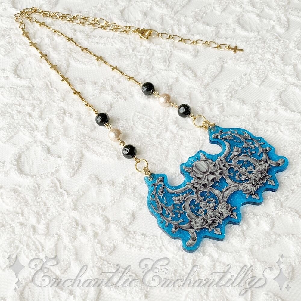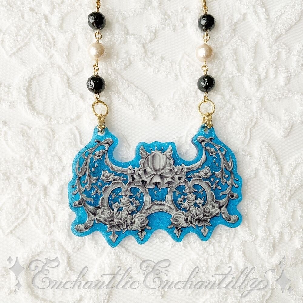 夜空のような青いアクリルに気持ちよく舞っているコウモリ公爵のネックレスです。思いっきり可愛い全身コーデからカジュアルまでその日の装いに合わせてコーディネートをお楽しみください。ご自分用としてはもちろん、大切な方への贈り物としてもオススメです。