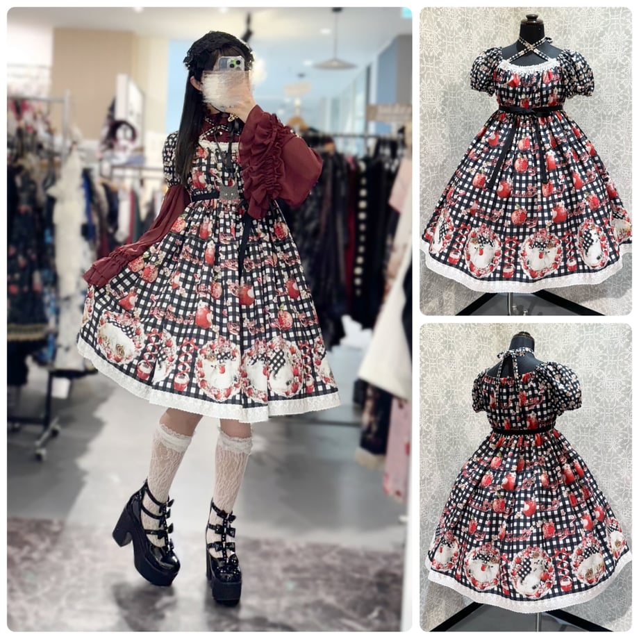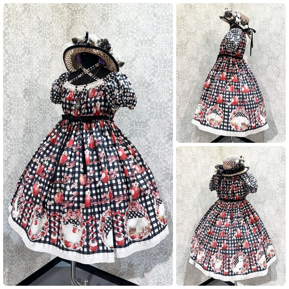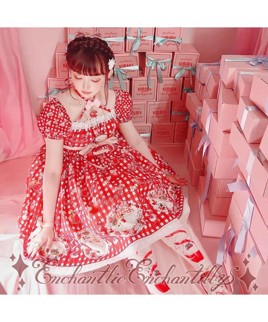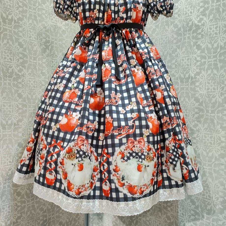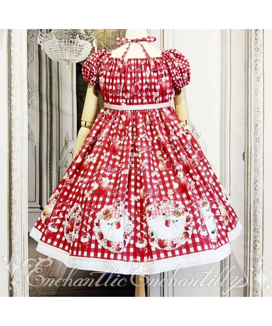 [Brand comment] Princess Lily ~Dreaming Red Apple~ Princess Lily Series. She holds her favorite apple in her arms, uses it as a pillow, and plays with it even in her dreams. In response to customer requests for a shorter length, Enchantlic Enchantilly has released a shorter skirt length for the first time in a long time. The hem of the skirt is made of plenty of wide lace with a ribbon pattern. This cute gingham check dress combines sweet lace with a classical atmosphere. Because it is a short length, you can enjoy layering it with an underskirt.