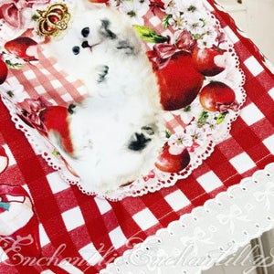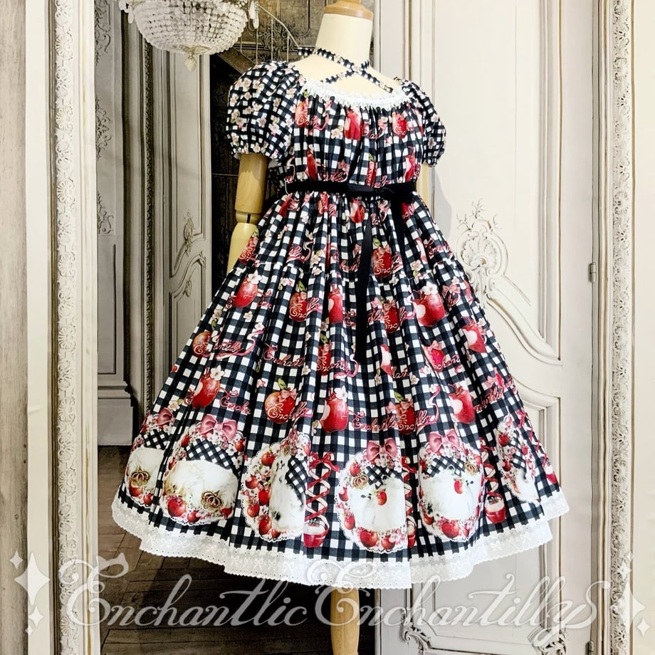 大好きな林檎を抱えたり、枕にして夢の中でも林檎と一緒に遊んでいます。短い丈をご希望のお客様の声にお応えしてEnchantlic Enchantillyでは久しぶりの短めのスカート丈です。スカートの裾にはリボン柄の幅広レースをたっぷりと。甘めのレースと、クラシカル雰囲気も兼ね備えたキュートなギンガムチェックワンピースです。短めの丈だからこ出来るアンダースカートなどを合わせて重ね着も楽しんでいただけます。