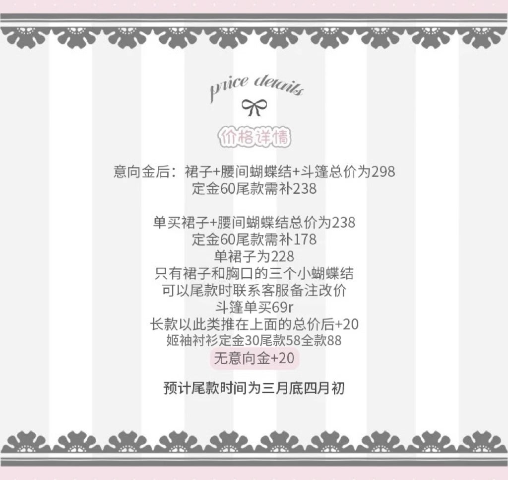 - If you only want the dress with three small bows (waist and chest bows), you can request this customization during the final payment.
