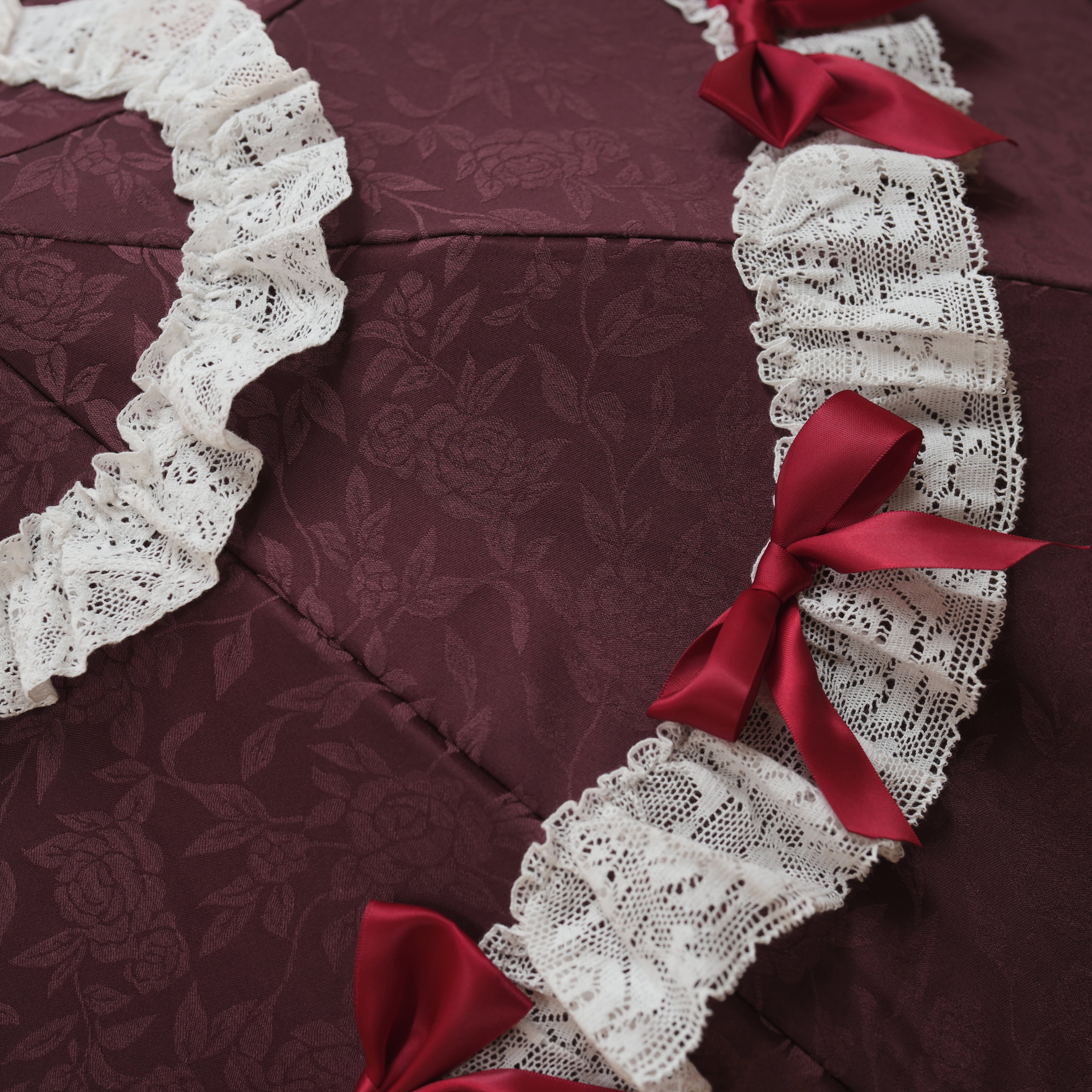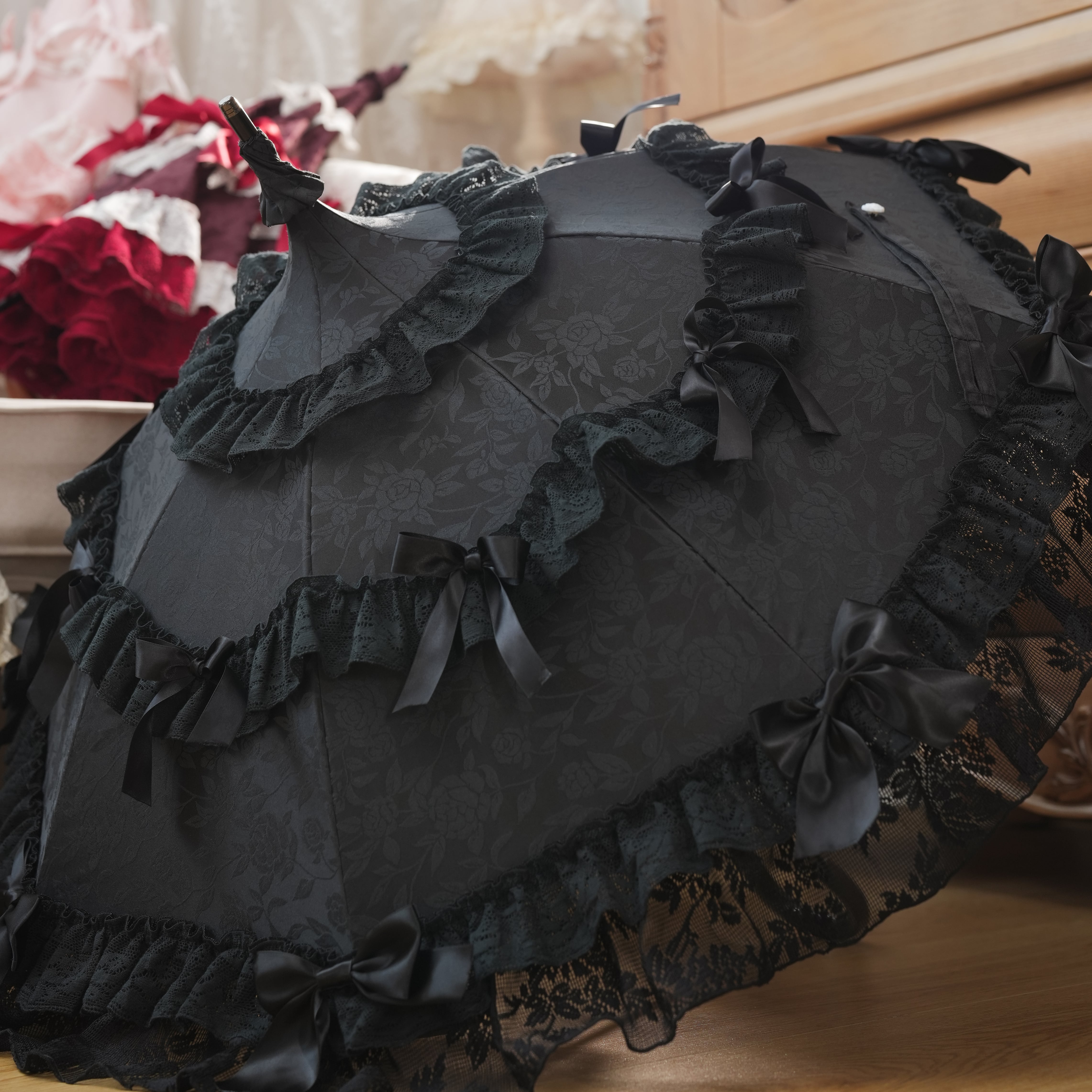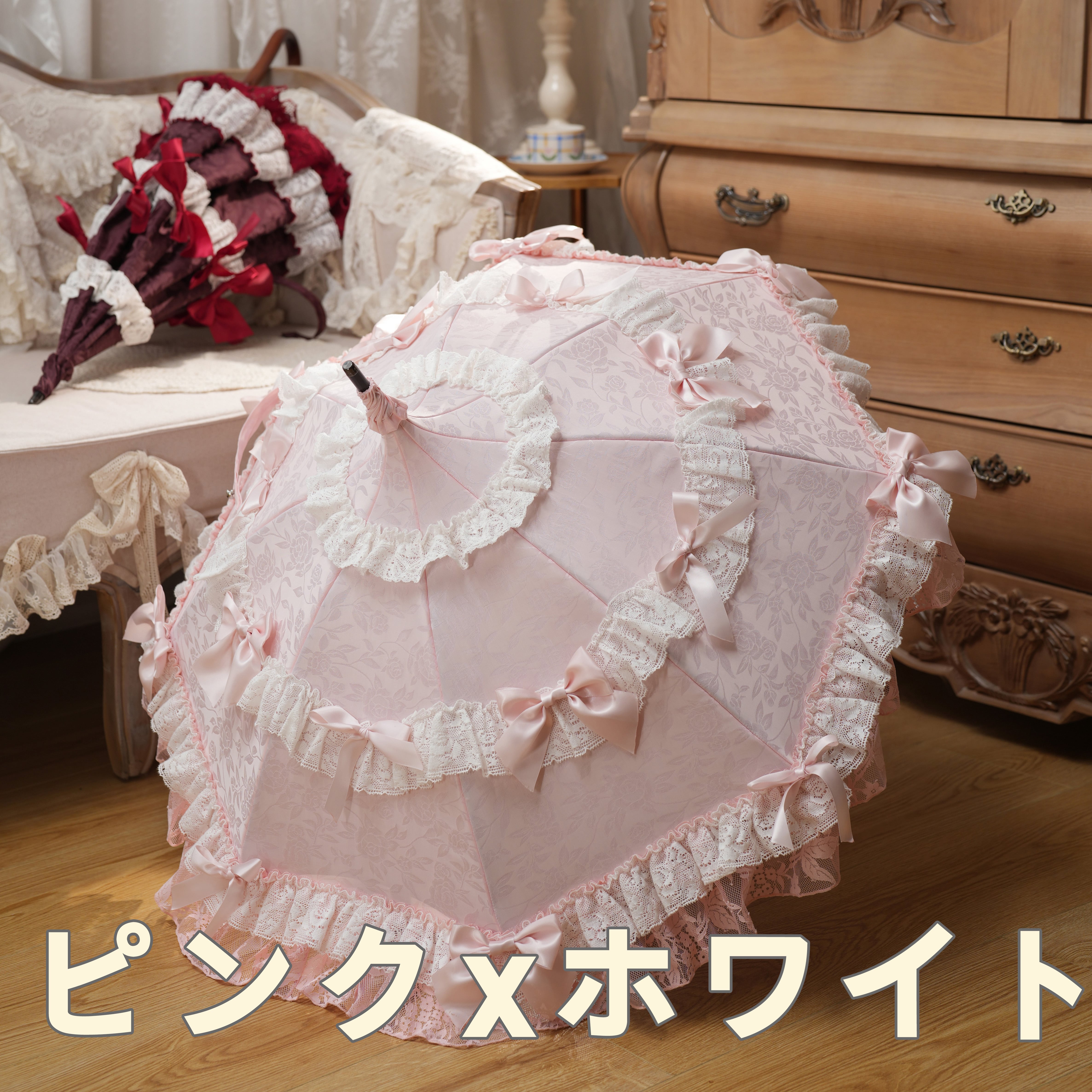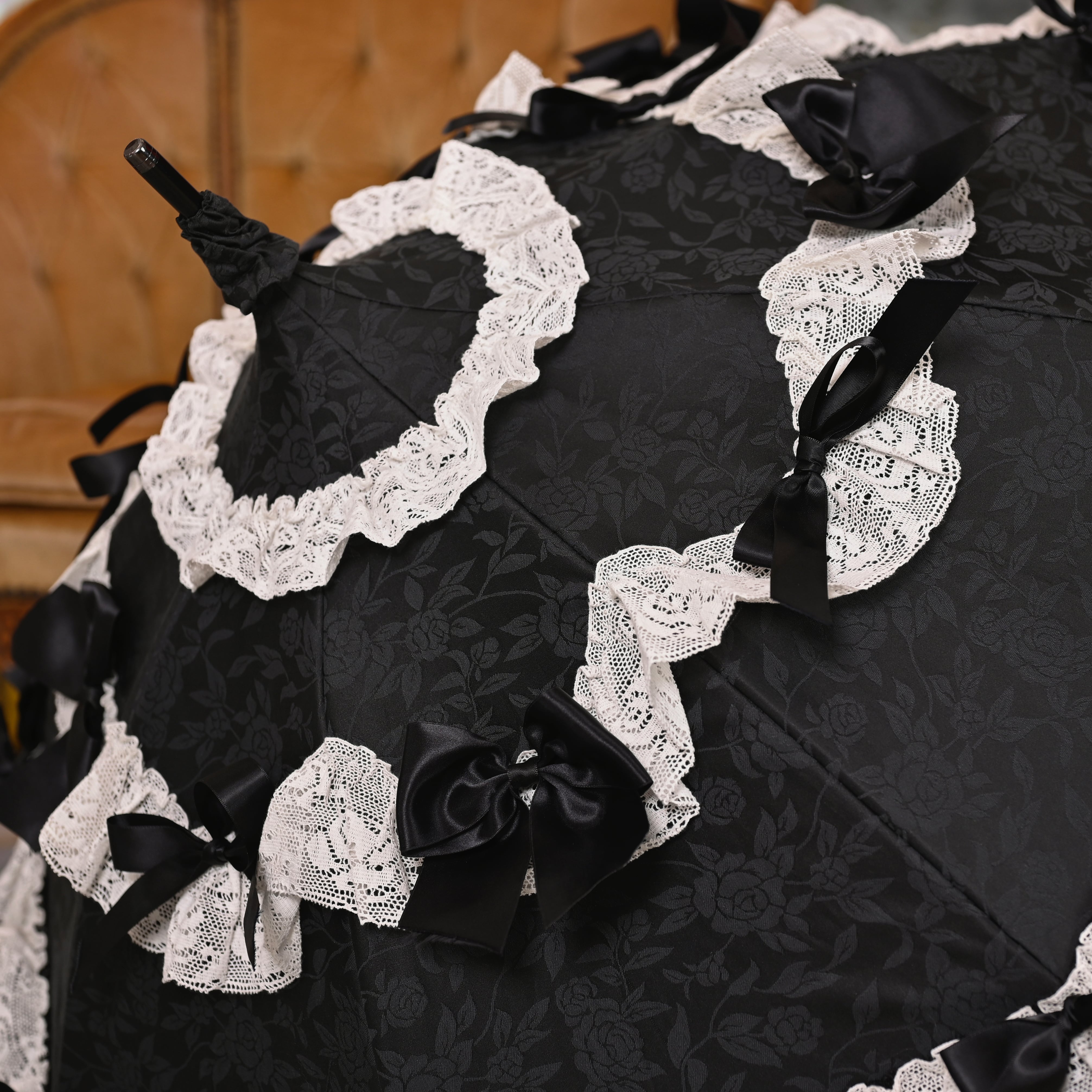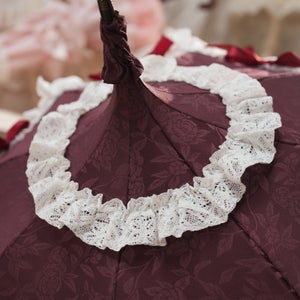 Gently open the rose clasp for a 360-degree view of the coveted pagoda style. The handle length can be adjusted in two stages! The elegant rose-patterned fabric is accented with lace and a delicate ribbon, creating a truly charming effect.