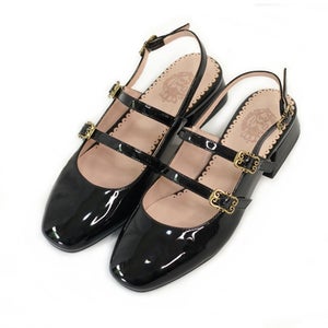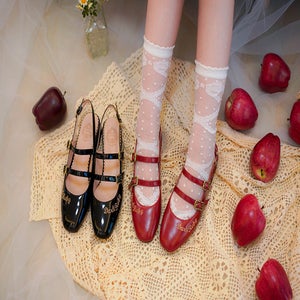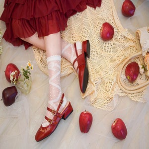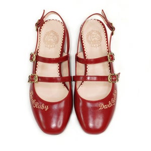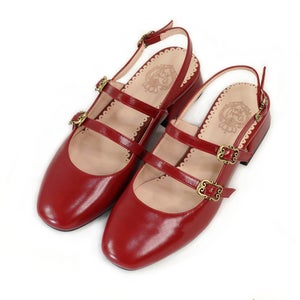 Dark Ruby ~ Ruby Night Three Strap Mary Jane Low-Heel Sandals