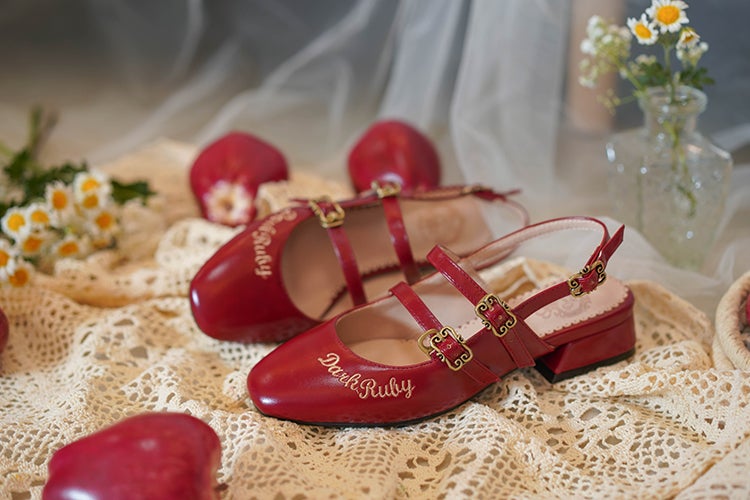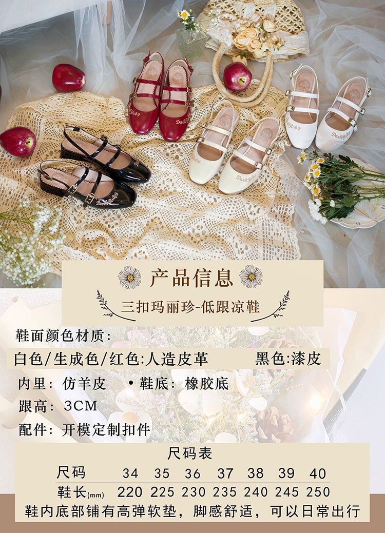 DarkRuby红宝石之夜三扣玛丽珍原创Lolita复古低跟凉鞋