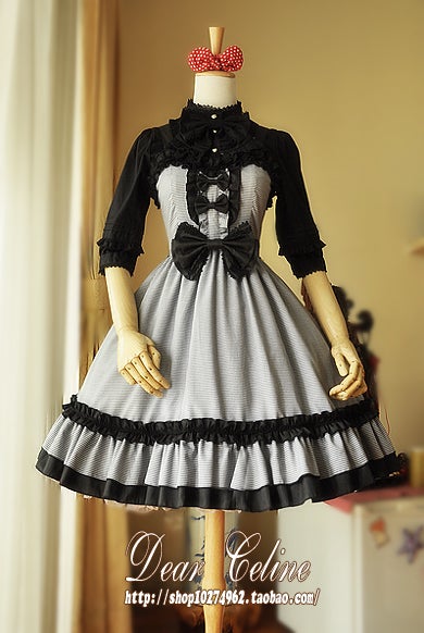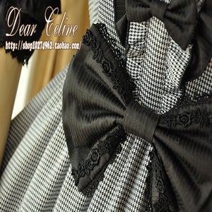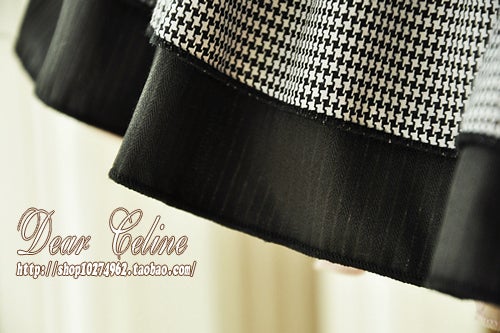 ☆DC 晚夏初秋 暗纹提花小千鸟格拼色款连身裙☆