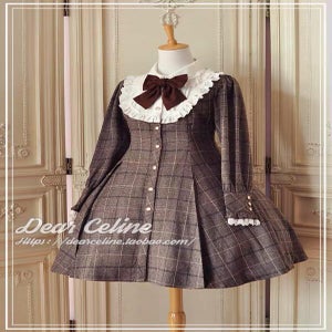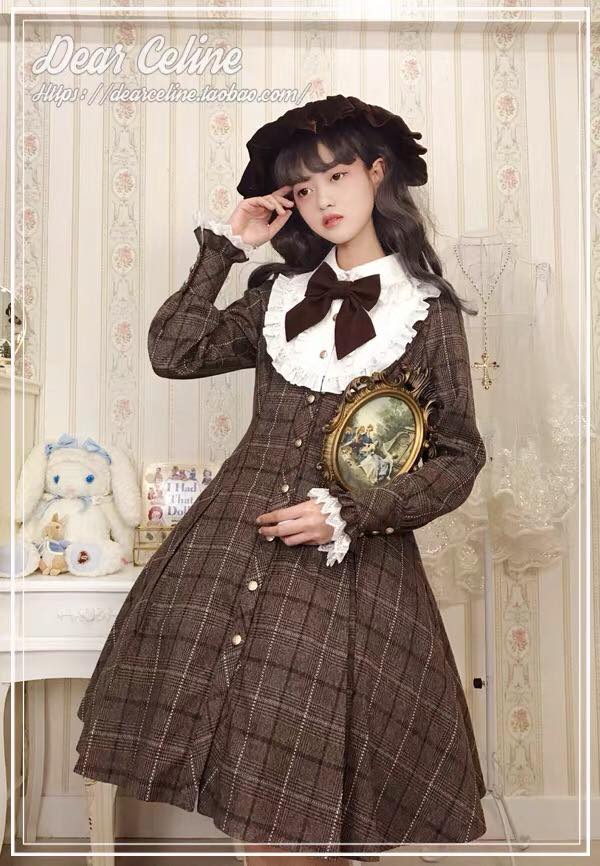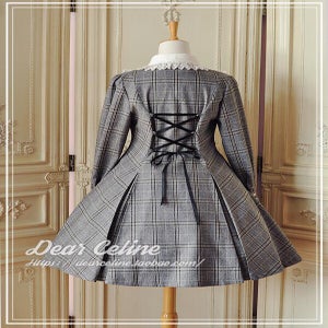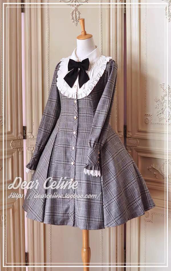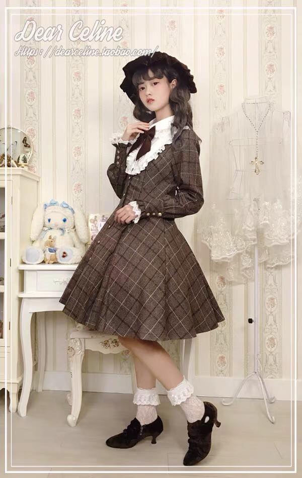 卡罗琳小姐的冬季 经典八片式裁剪格子羊毛风衣/连衣裙