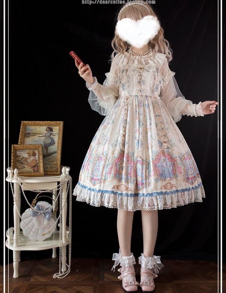 八月的海 亮丝渐变雪纺连衣裙Lolita