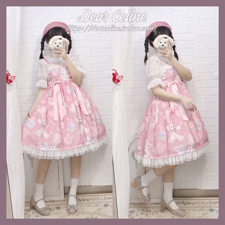樱花兔兔和风系列小高腰日常款背带洛丽塔