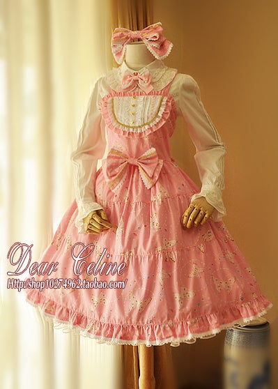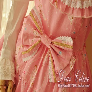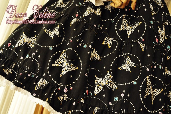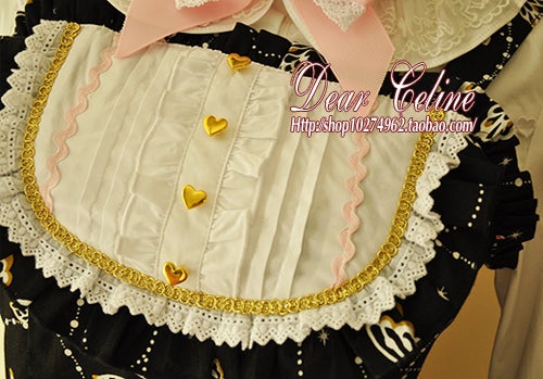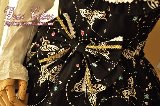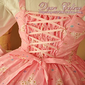 ☆DC 微甜初秋 爱心扣蝴蝶宝石印花拼接式下摆连身裙☆
