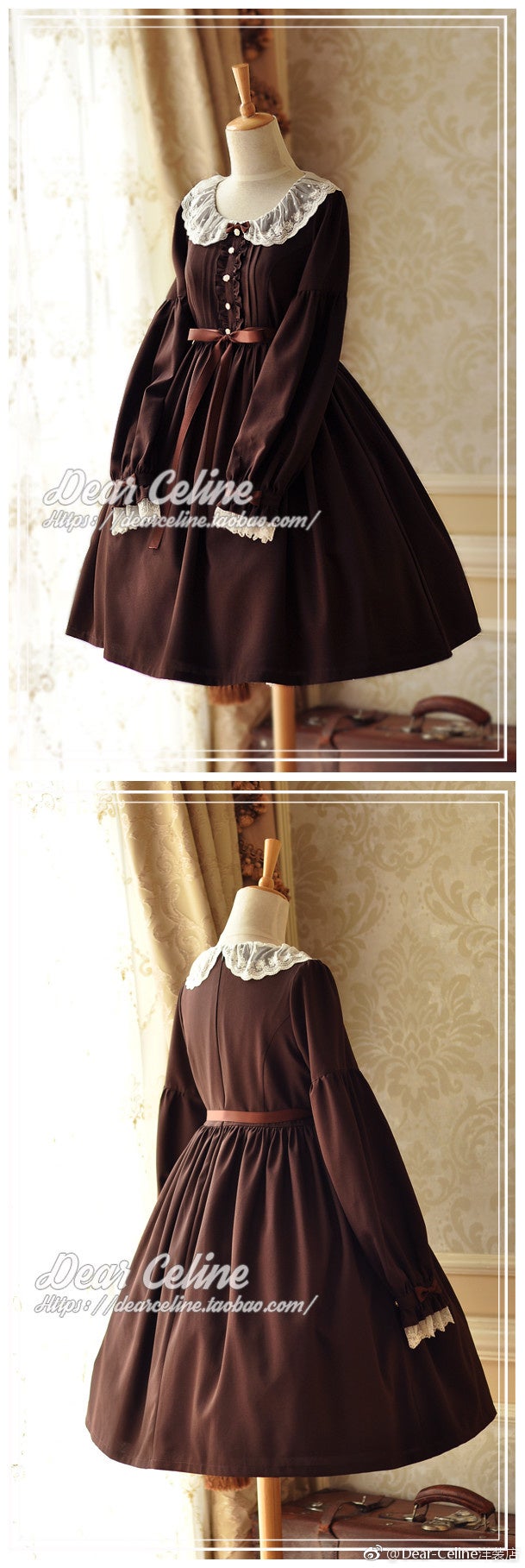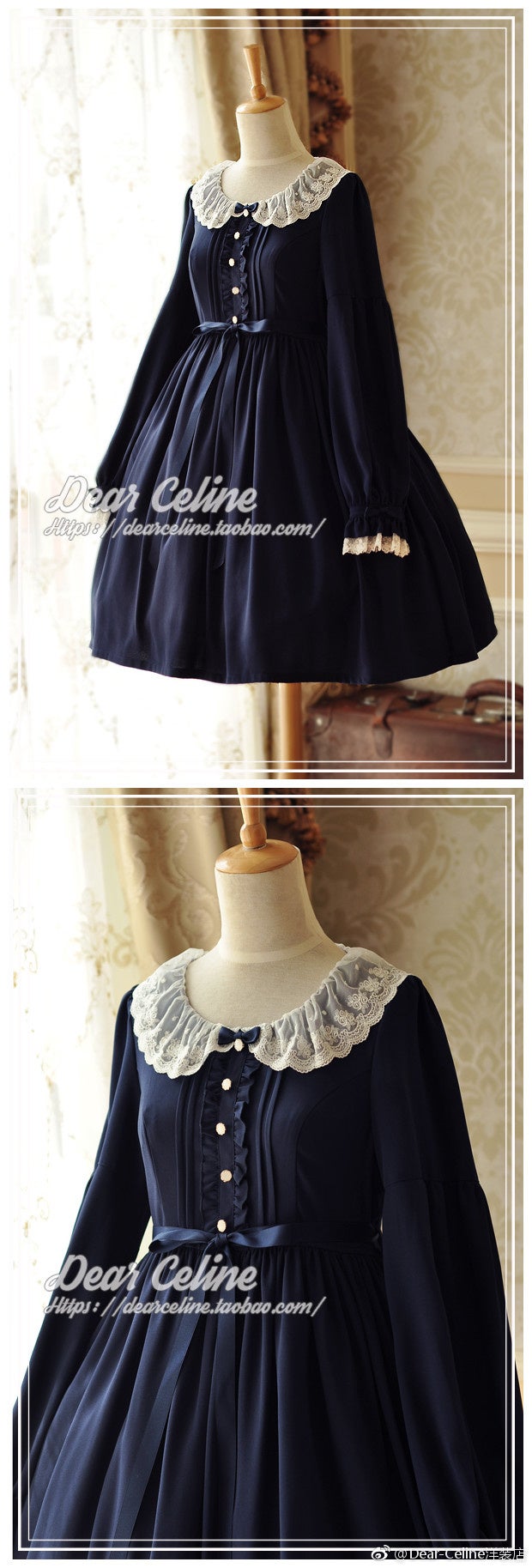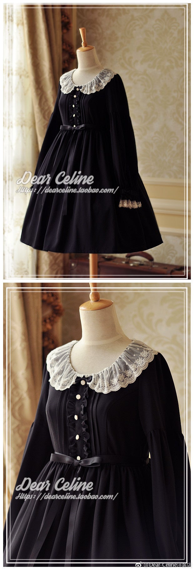 +DC+ 莱斯特小姐的午后 秋季纯色长袖连身裙OP
