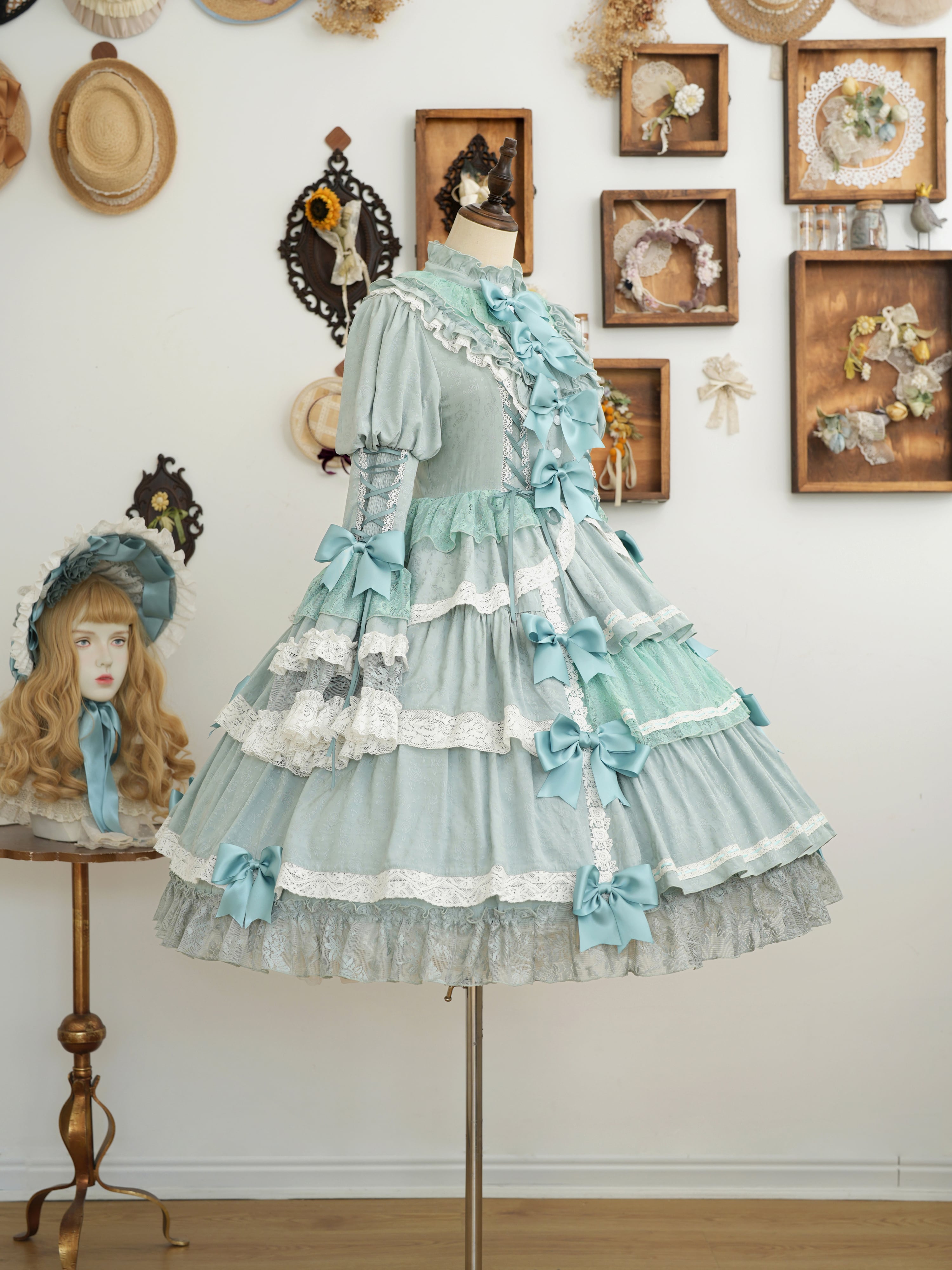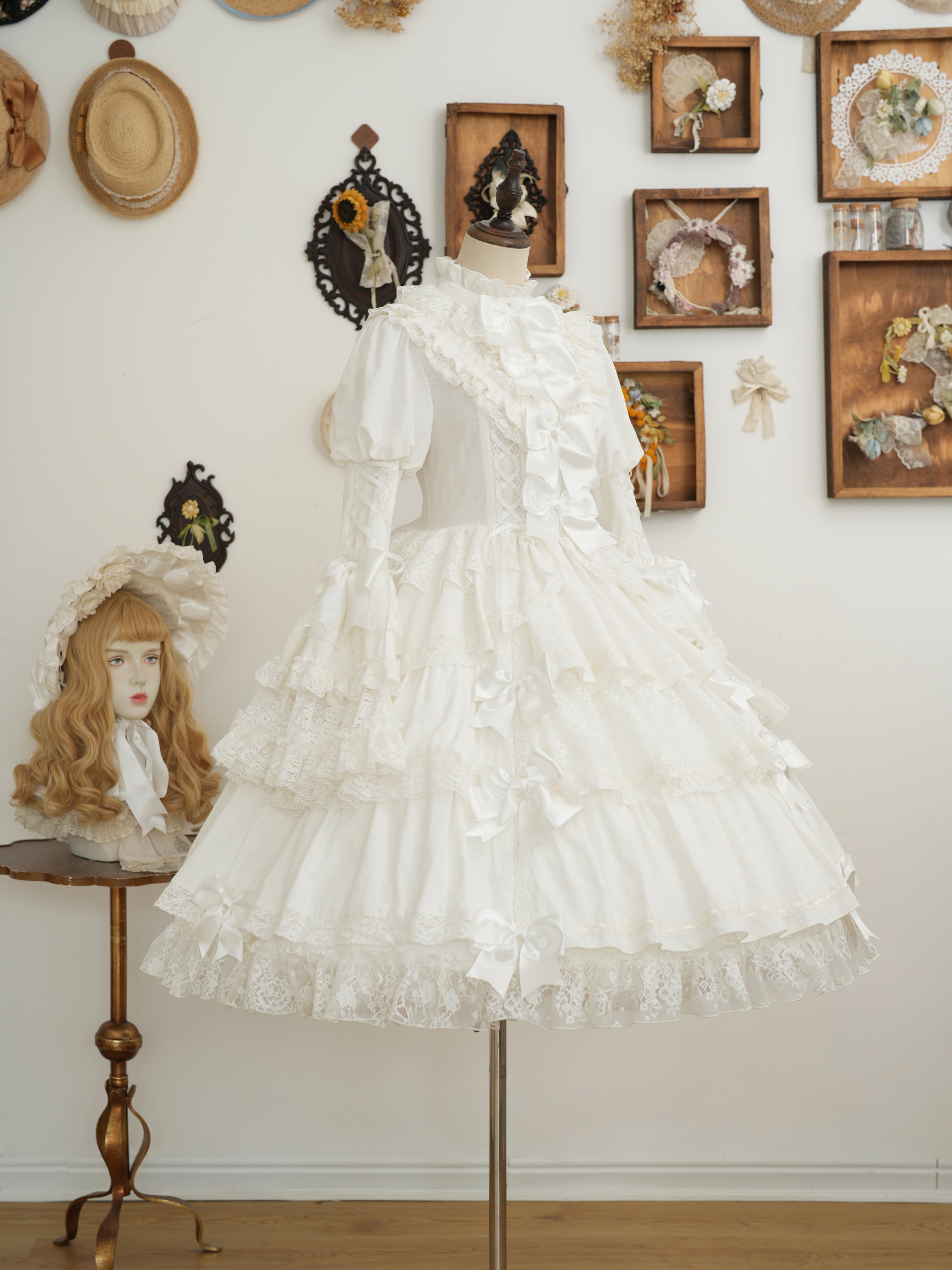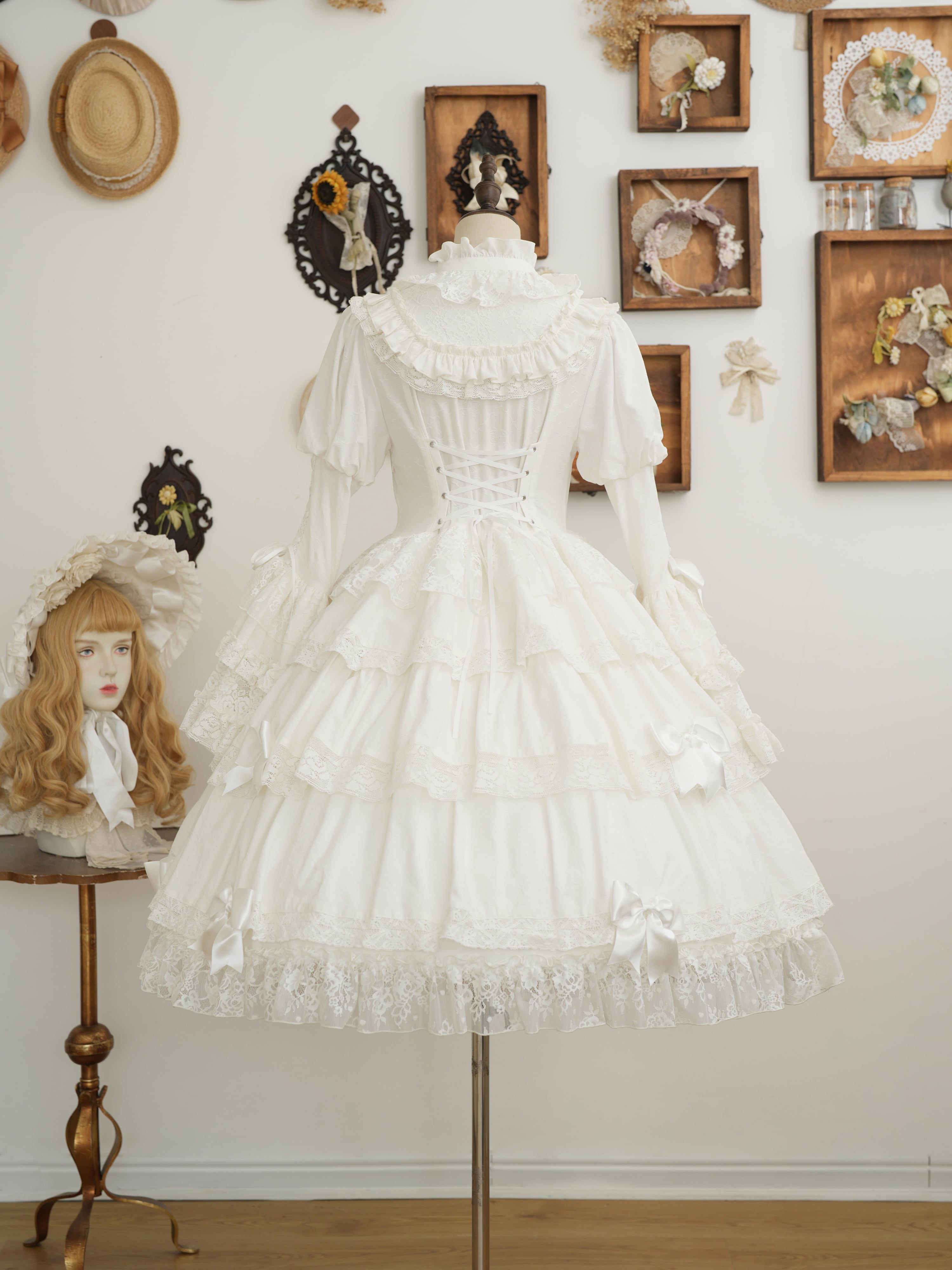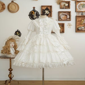 From end to end, the dress is adorned with ribbons, ruffles, and lace, embodying every girl's ideal. The Rococo-inspired design creates a refined yet sweet impression.