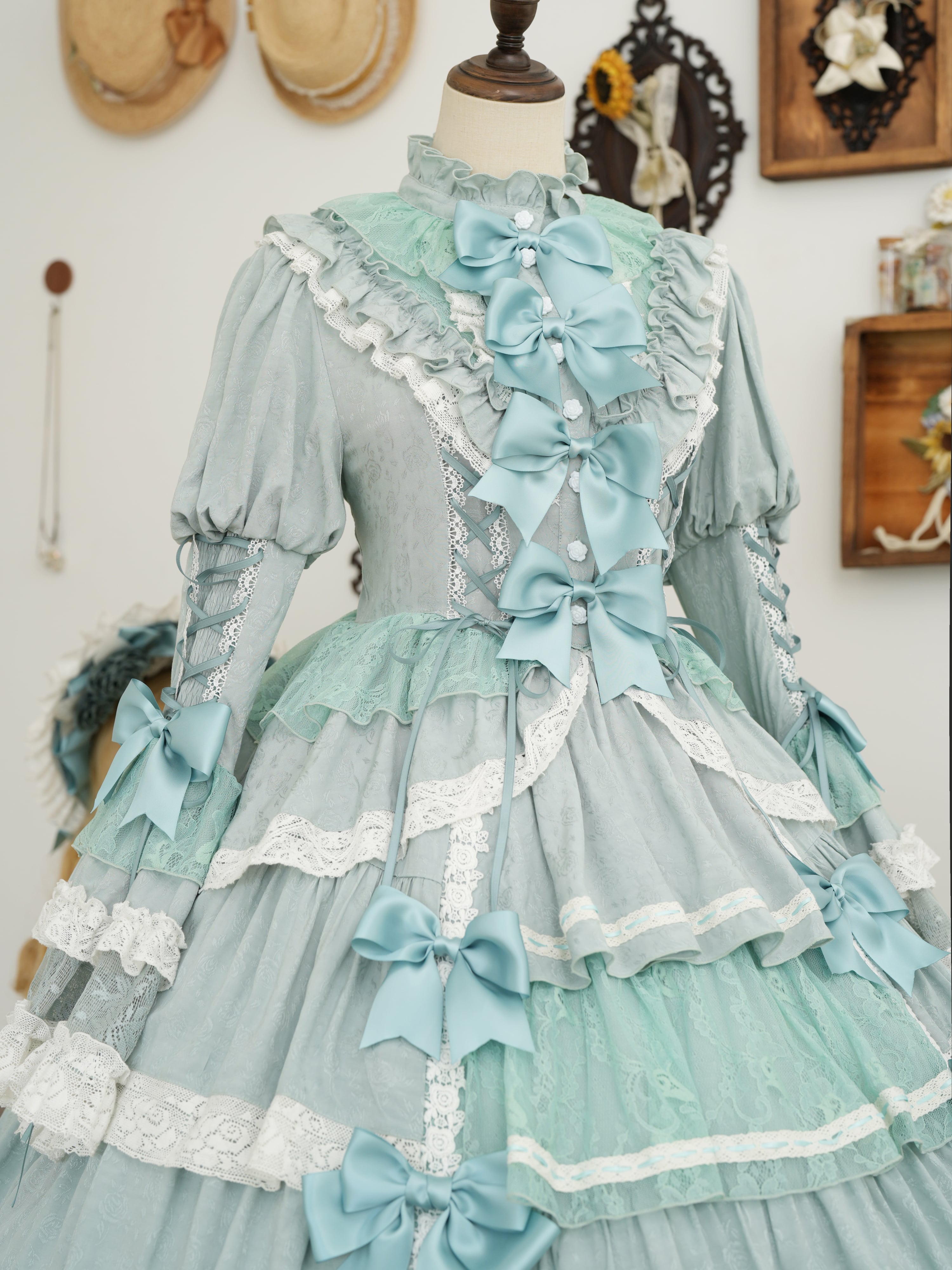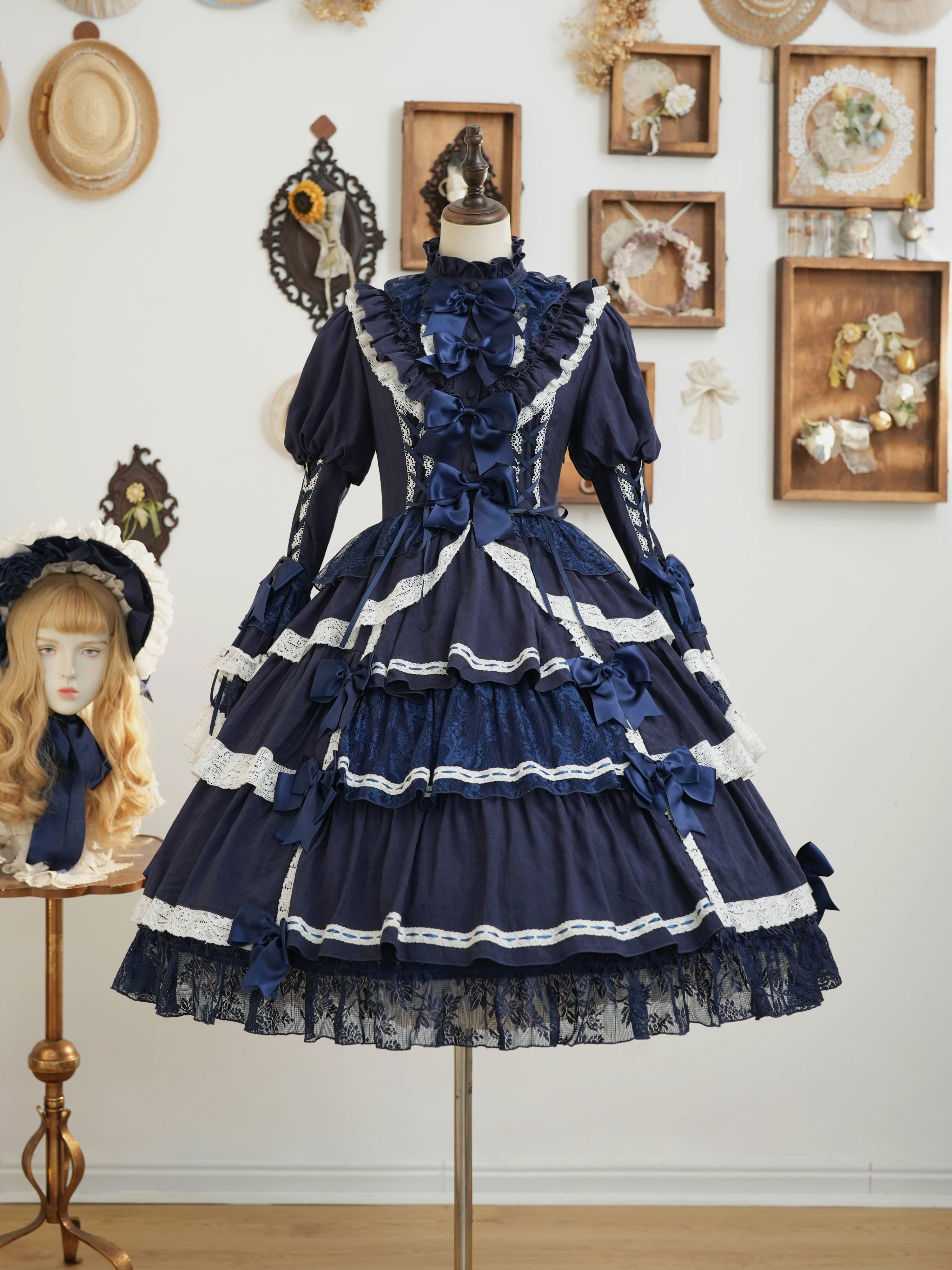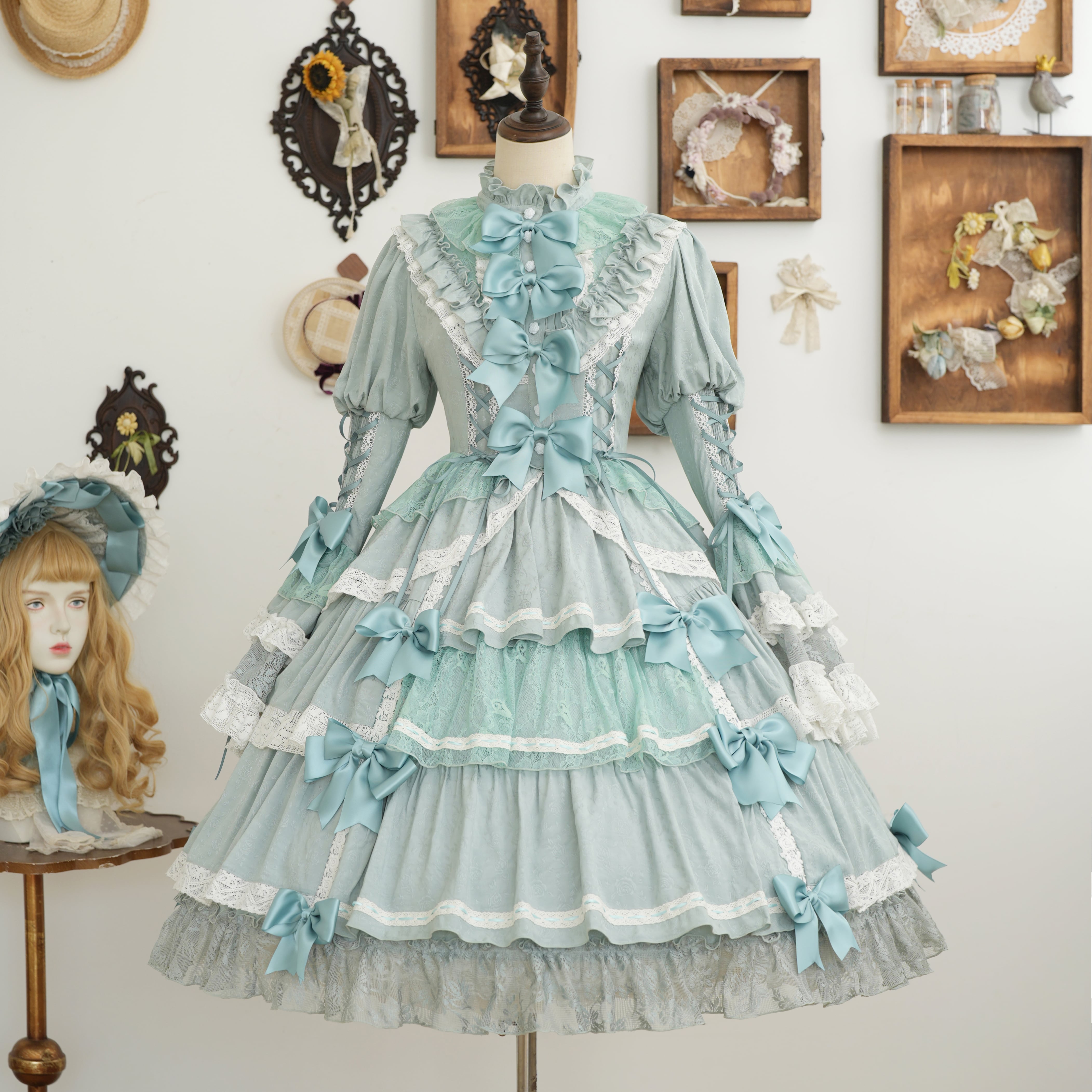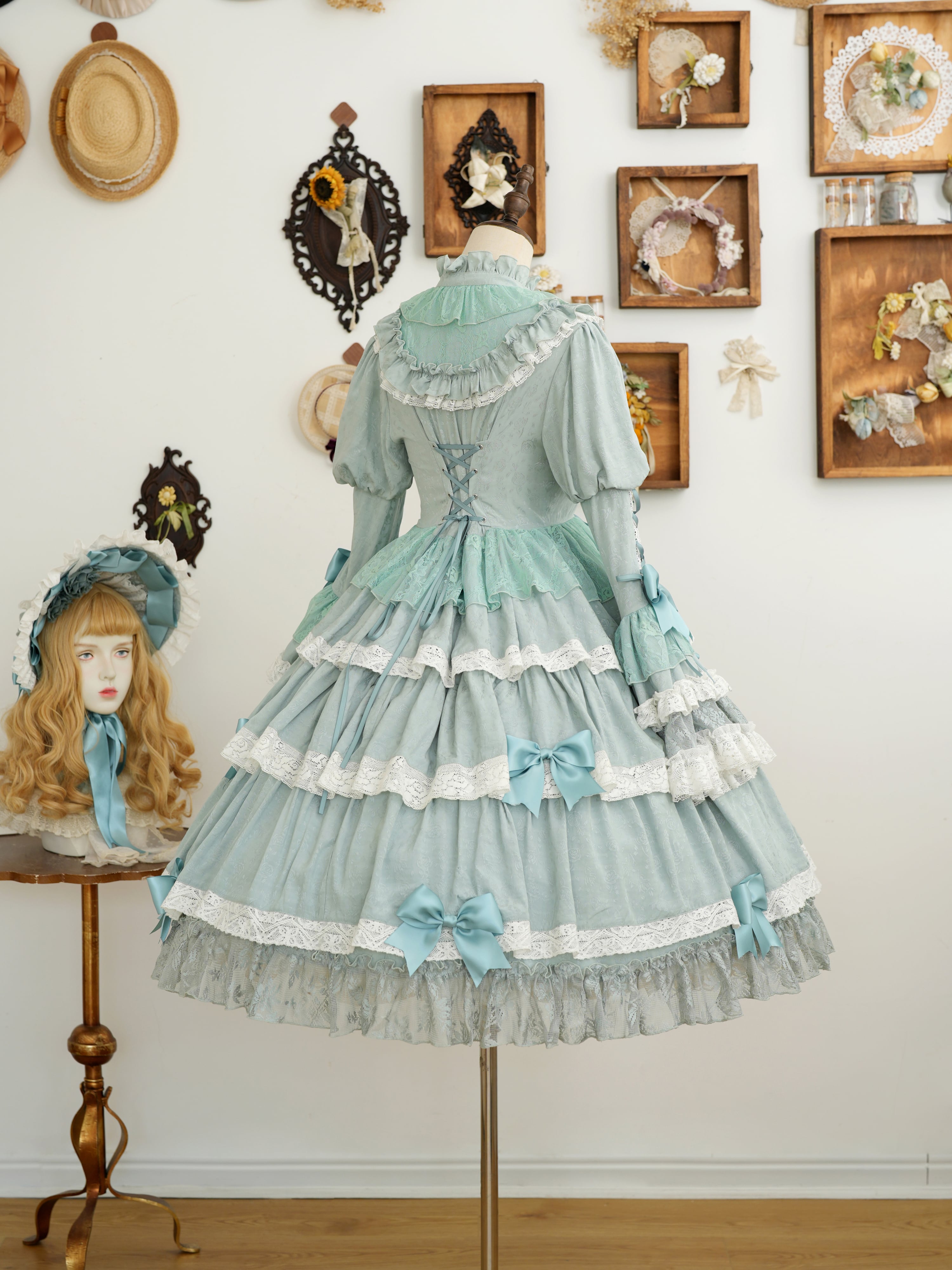From end to end, the dress is adorned with ribbons, ruffles, and lace, embodying every girl's ideal. The Rococo-inspired design creates a refined yet sweet impression.