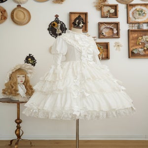 The ribbons lining the chest and the princess sleeves extending from the puff sleeves are both beautiful and cute.
