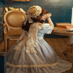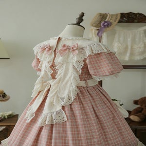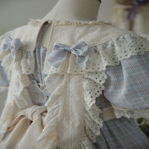 キラキラのリボンモチーフボタン、レースをたっぷり使用した大きな襟とうさぎの耳がキュート♡