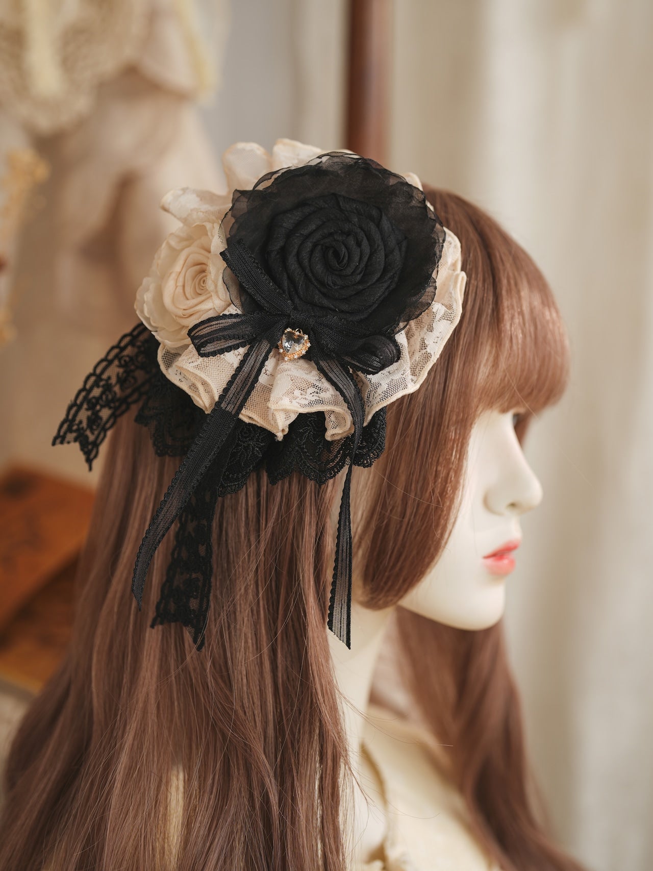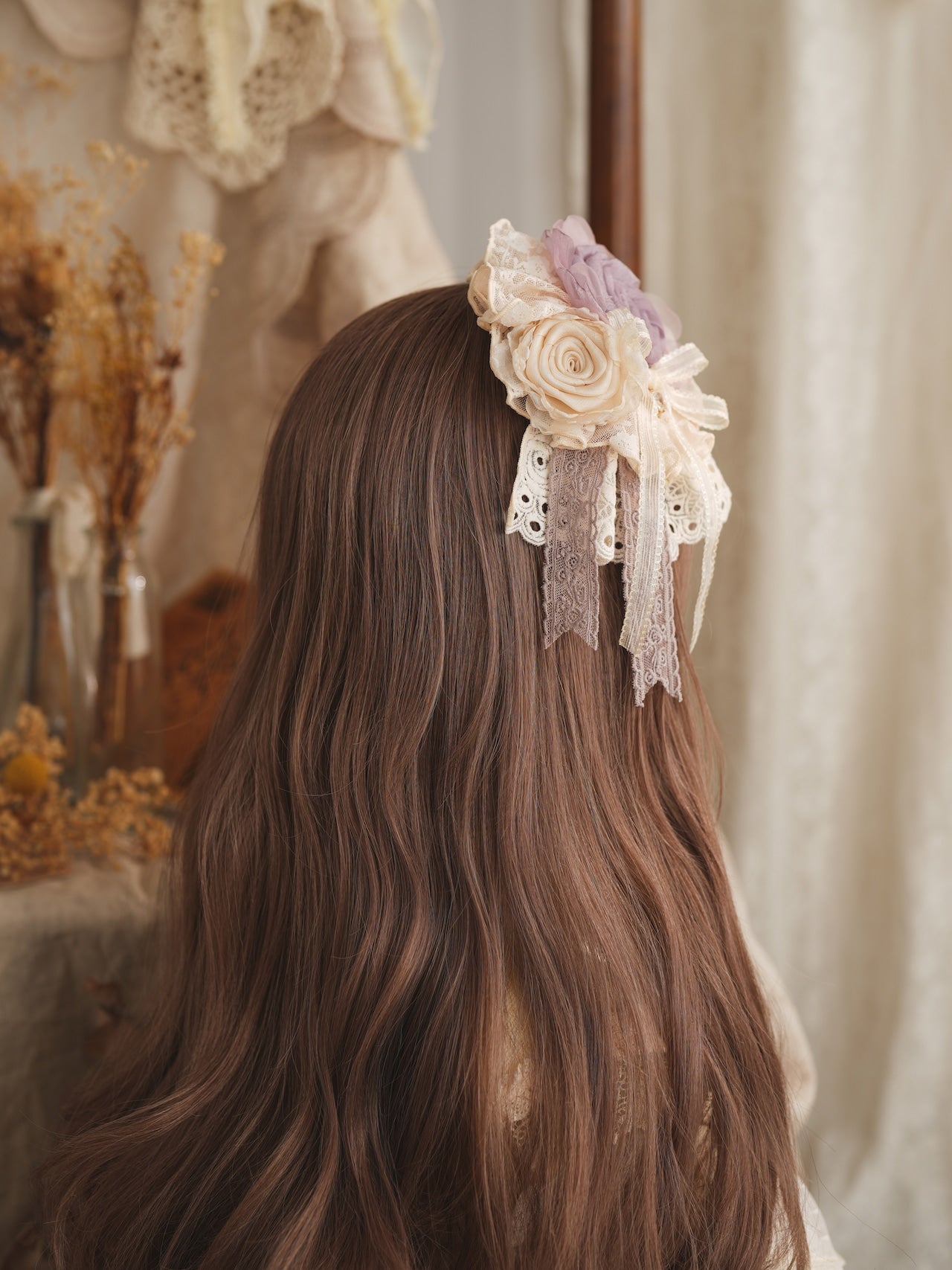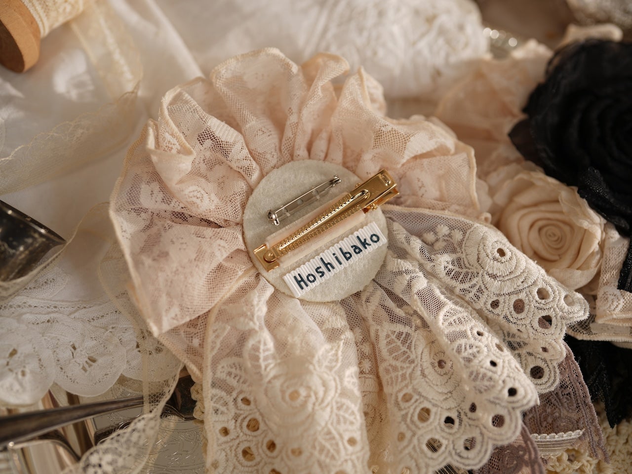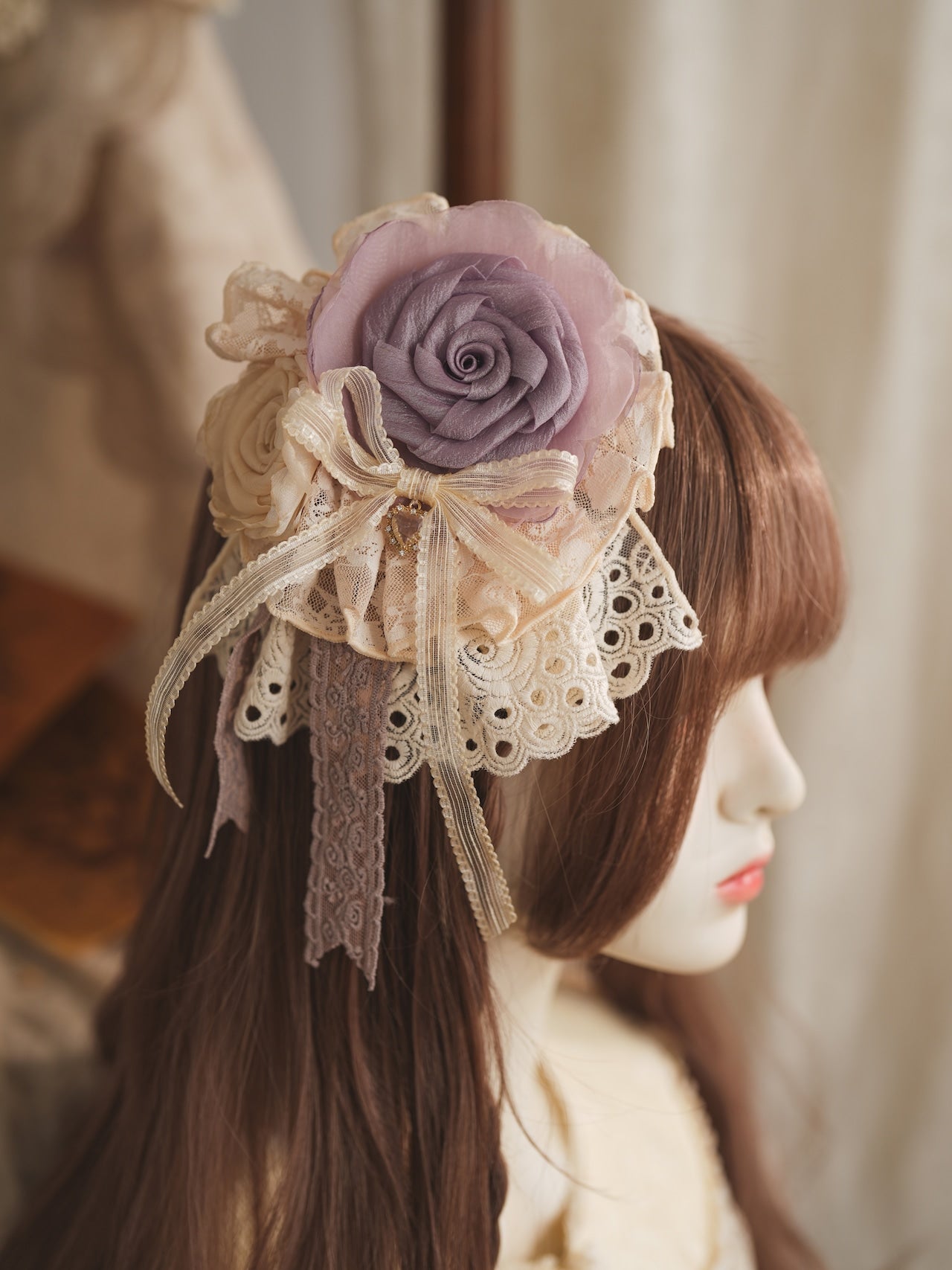 柔らかなレースと大ぶりの薔薇が美しいクリップ。
