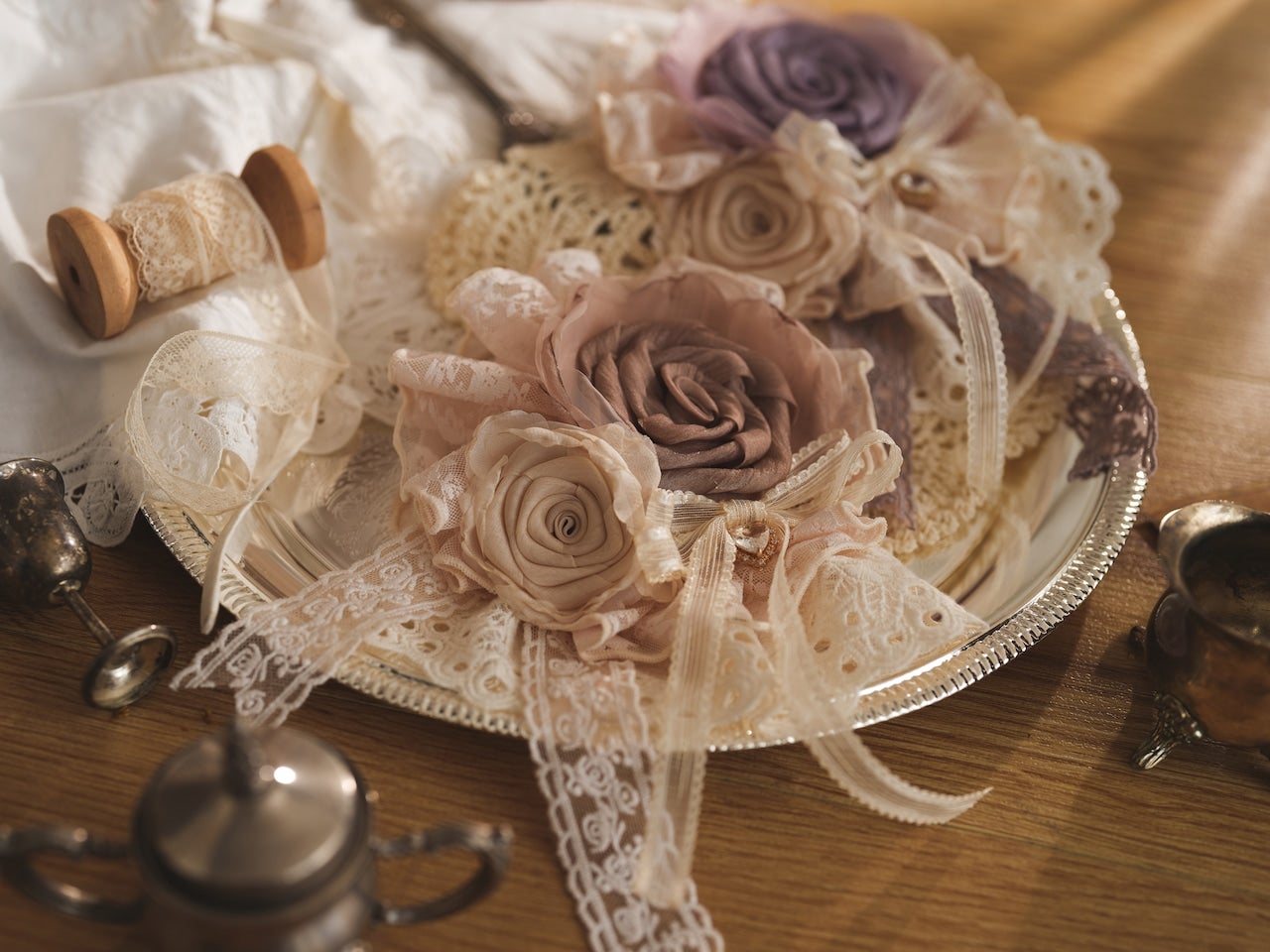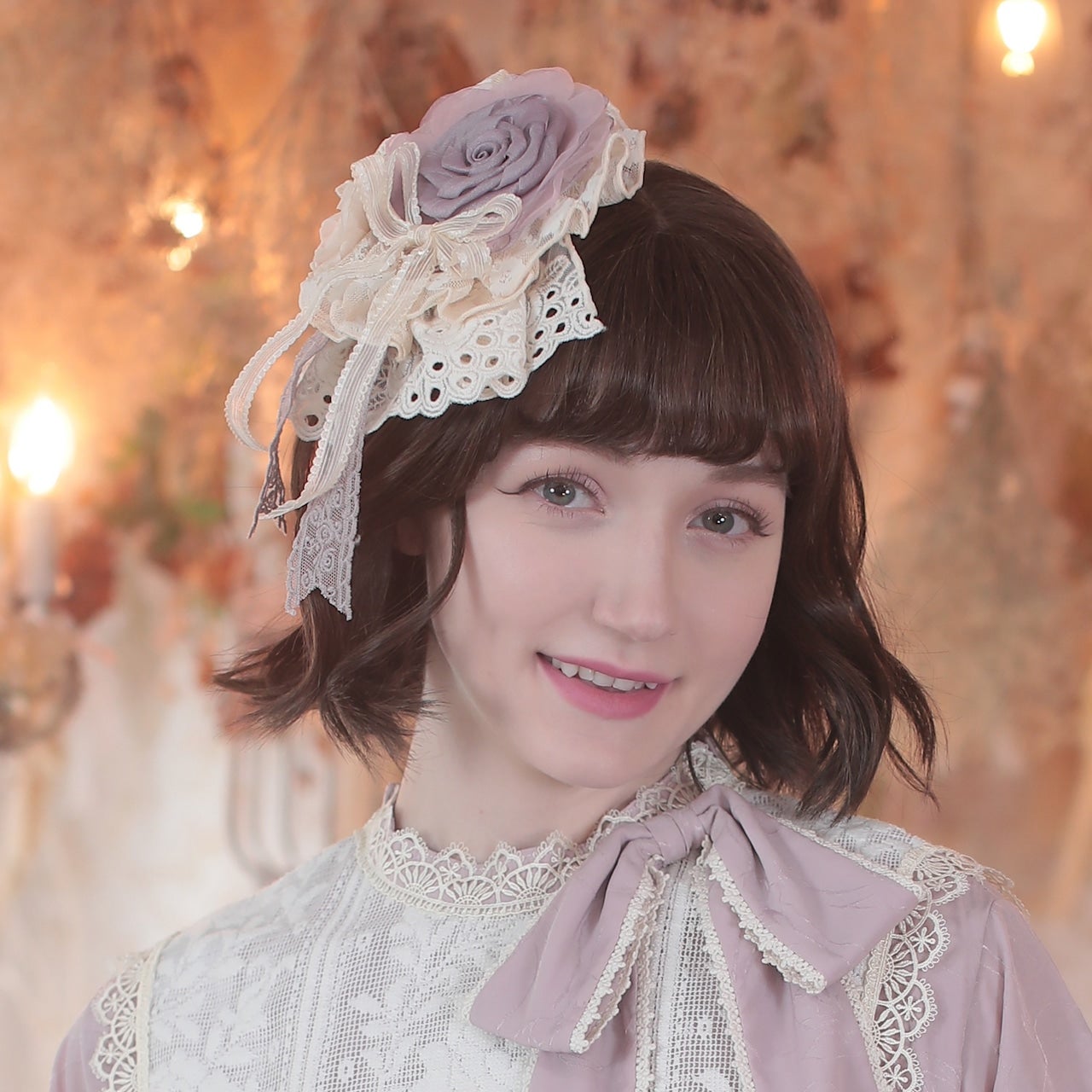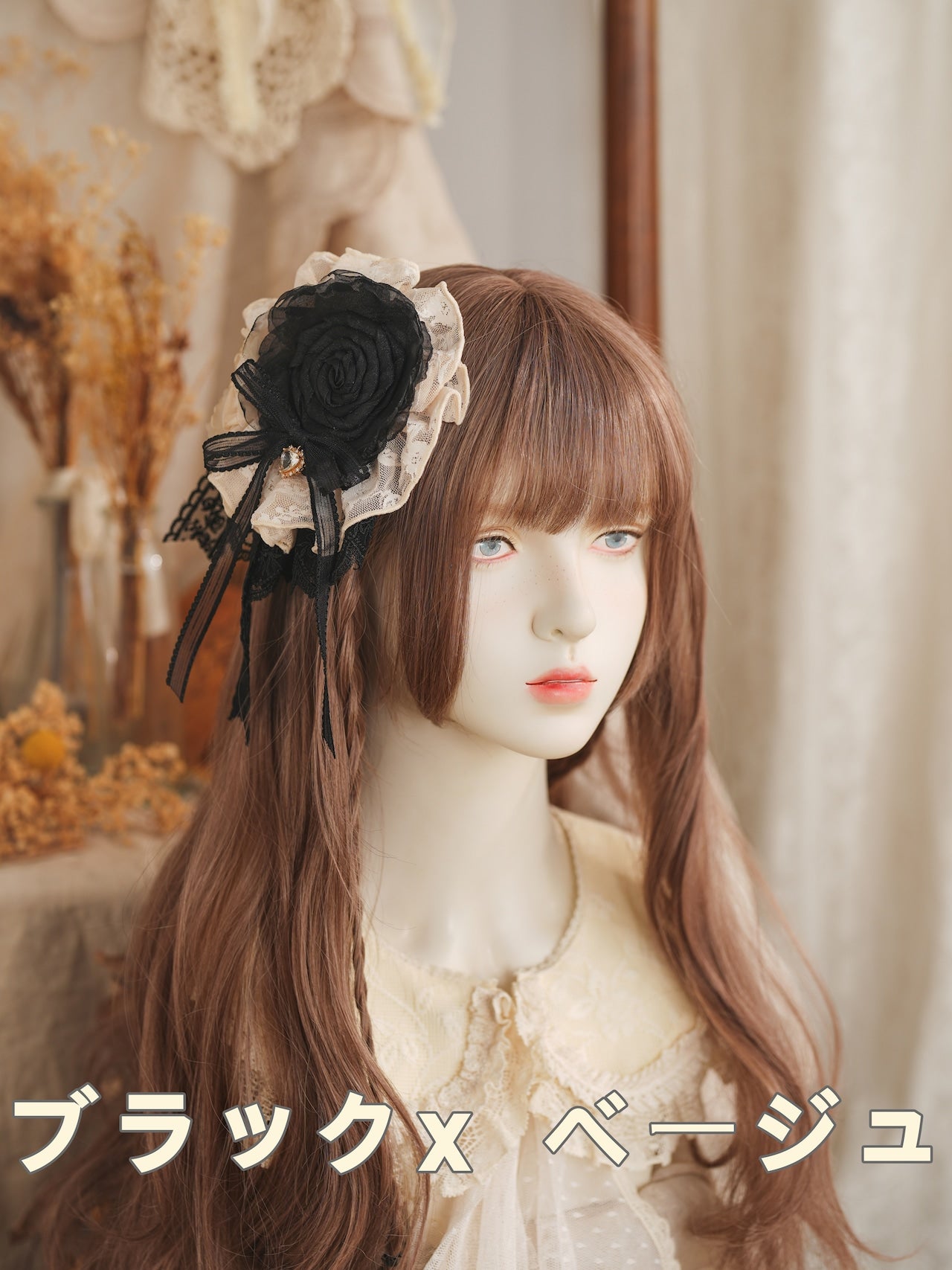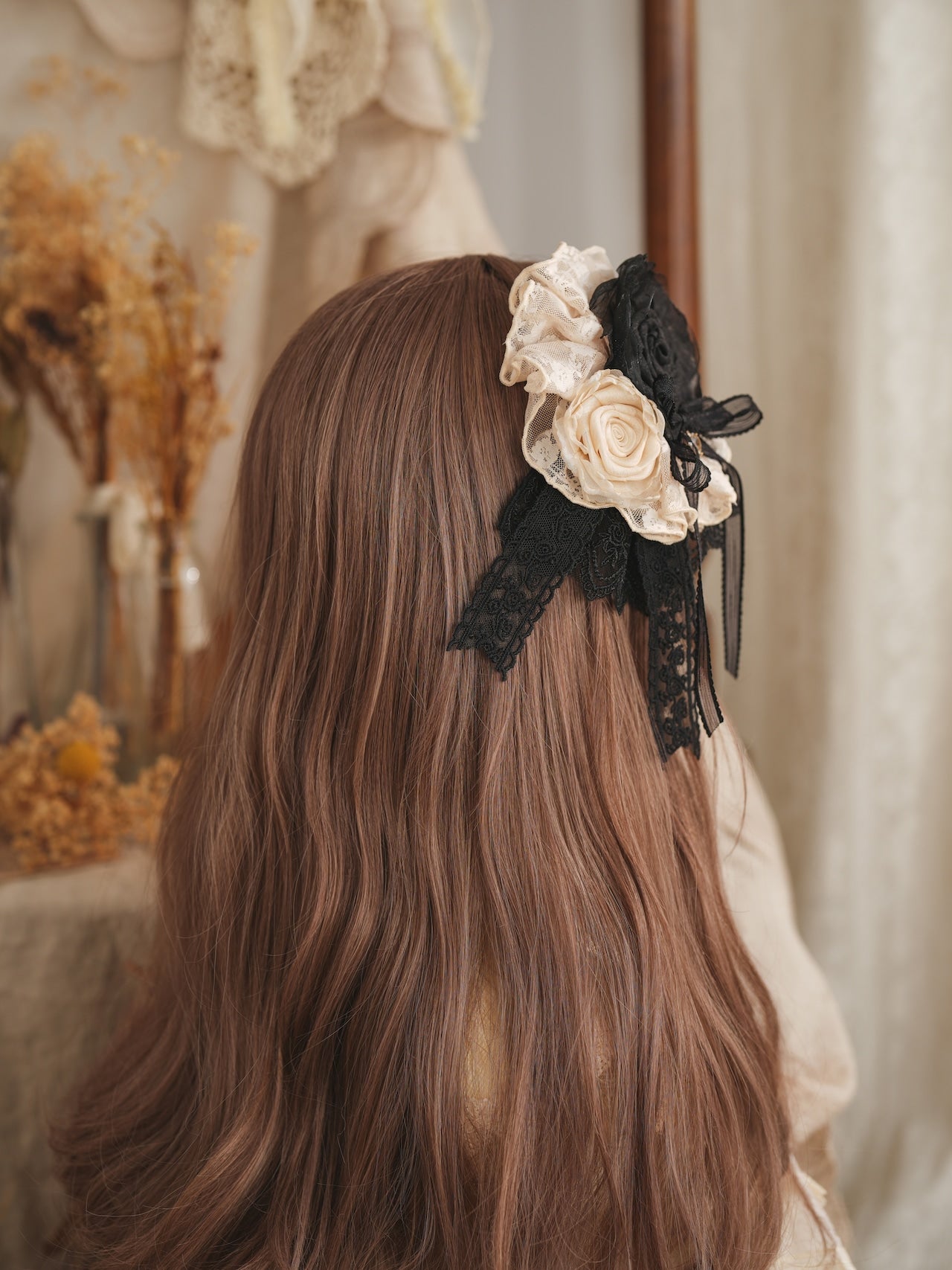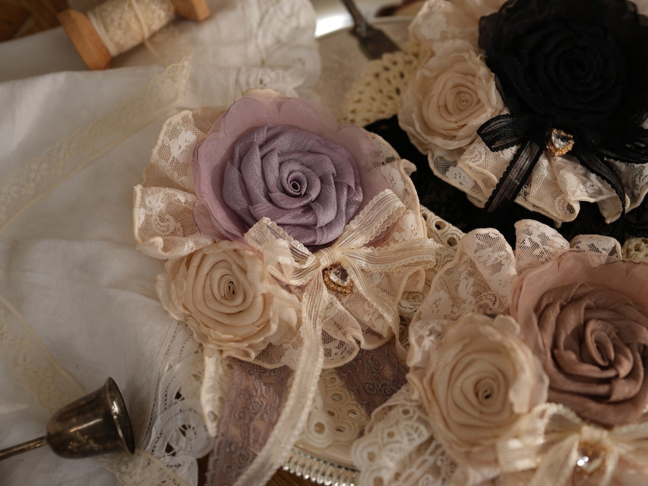柔らかなレースと大ぶりの薔薇が美しいクリップ。