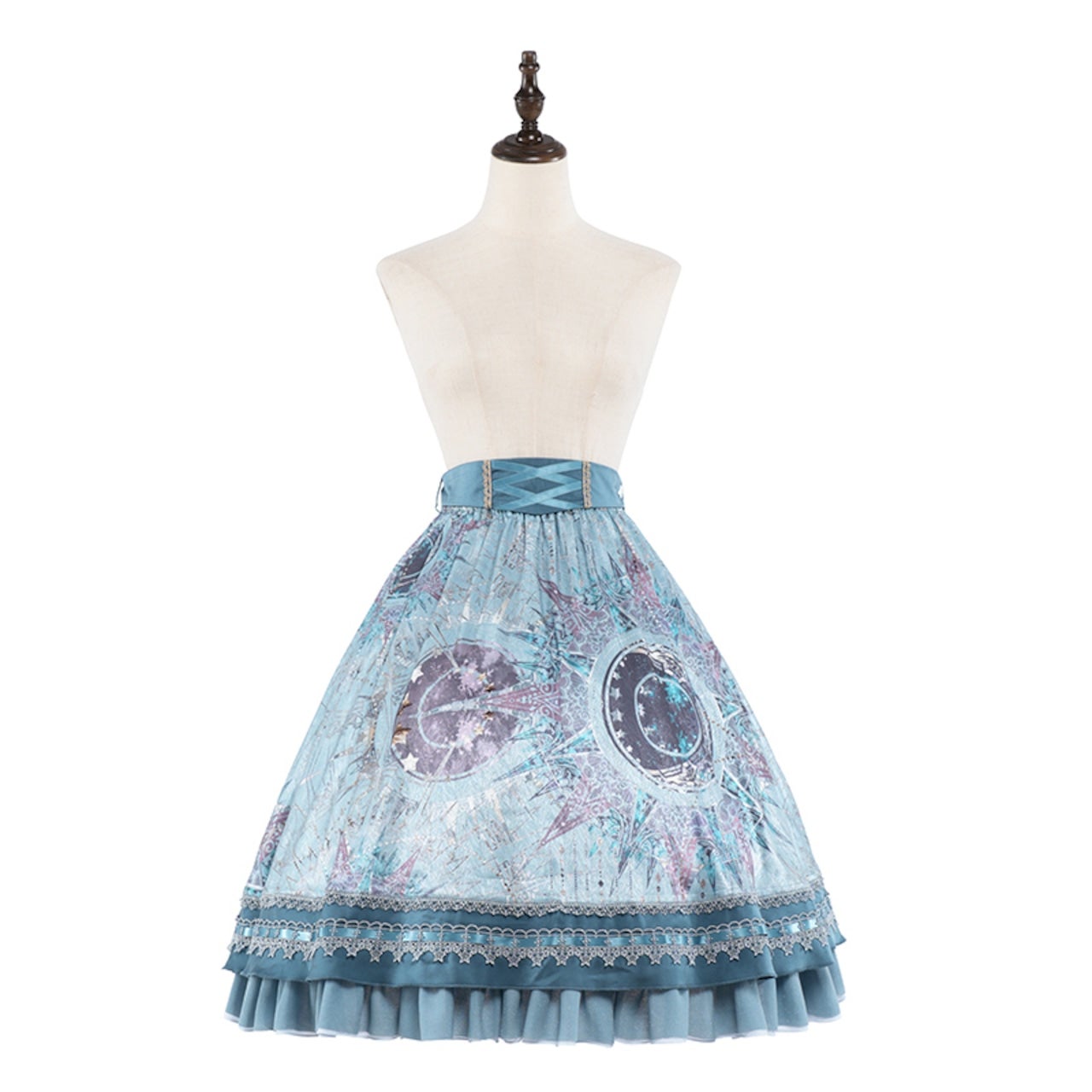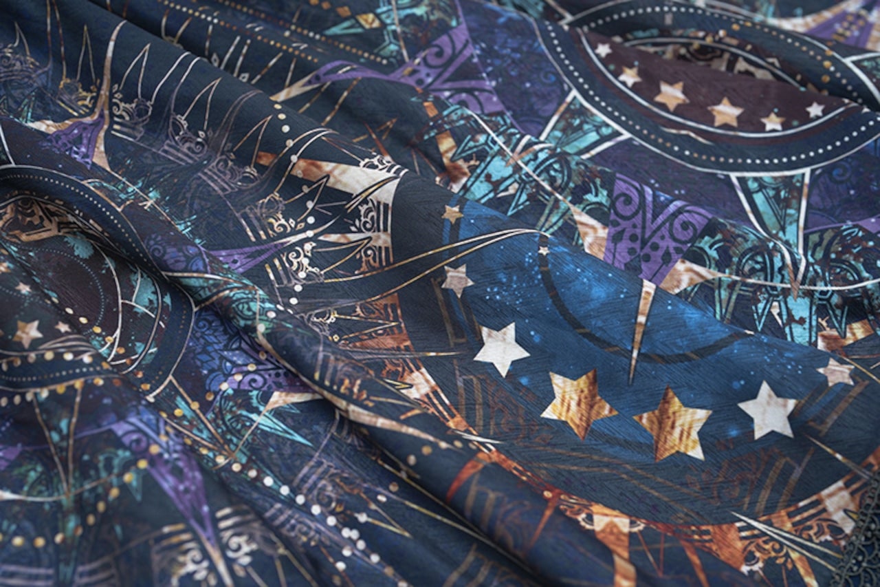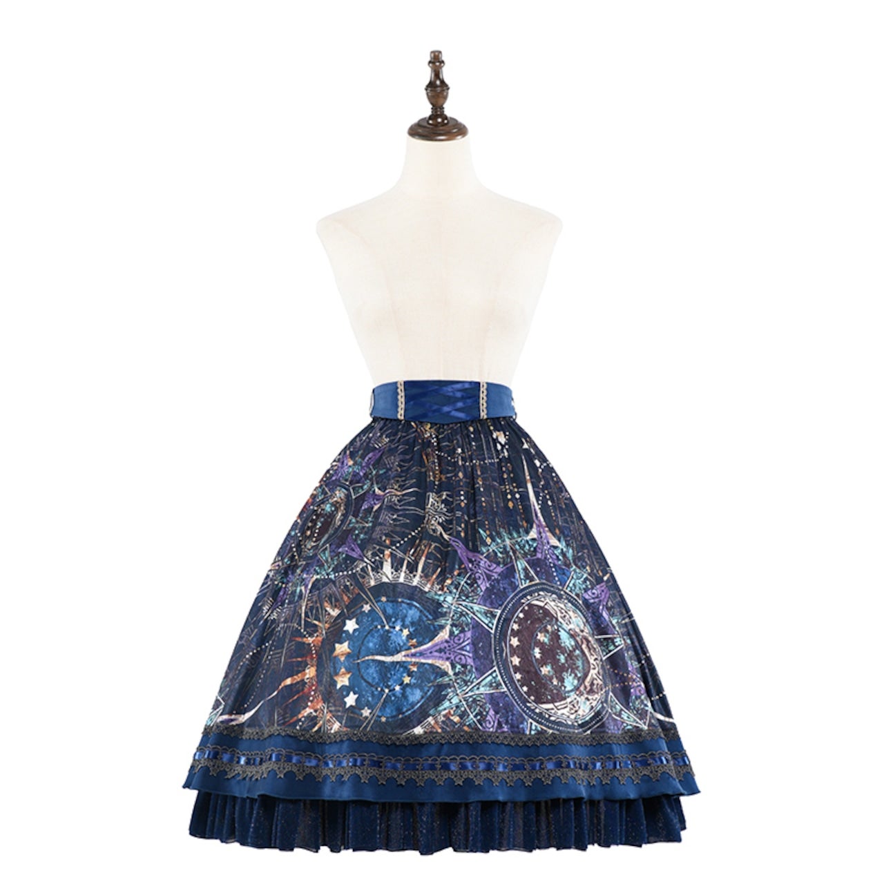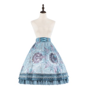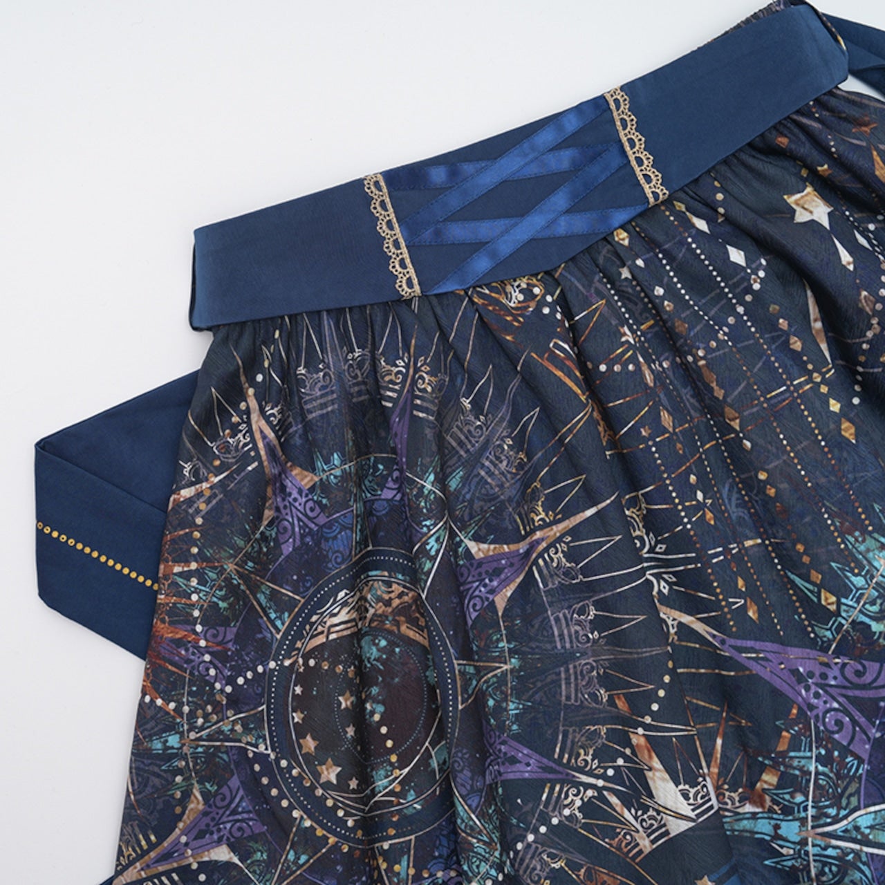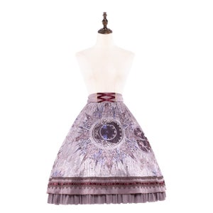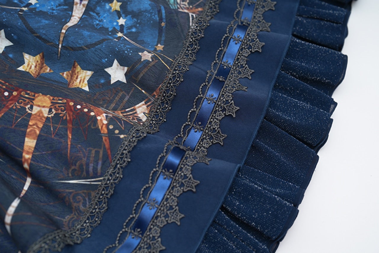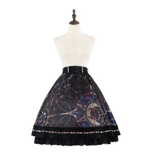 [Brand comment] From the Scarlet Stella series, which features beautiful star and magic circle patterns that make you feel like you've stepped into a fantasy world, comes a new item! This skirt features beautiful, fantastical stars and stained-glass-like magic circles. The glossy satin fabric enhances the elegant atmosphere. The elastic waistband provides a comfortable fit. It's adorned with sparkling, star-like gold lace and ribbons in various places. The front of the belt has a lace-up design and a charm-like print! It looks wonderful when worn with other items from the same series.
