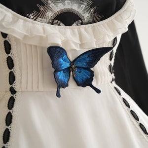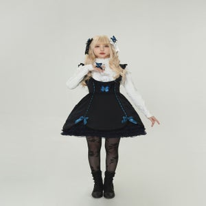 胸元の大きな蝶がミステリアスな雰囲気を醸し出します。