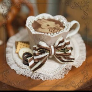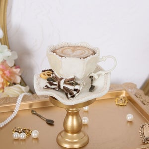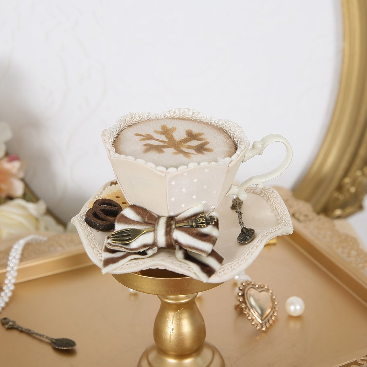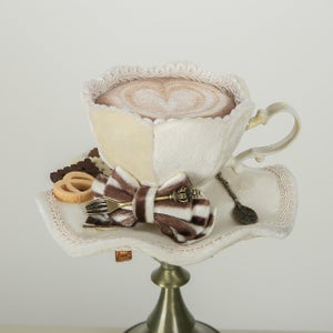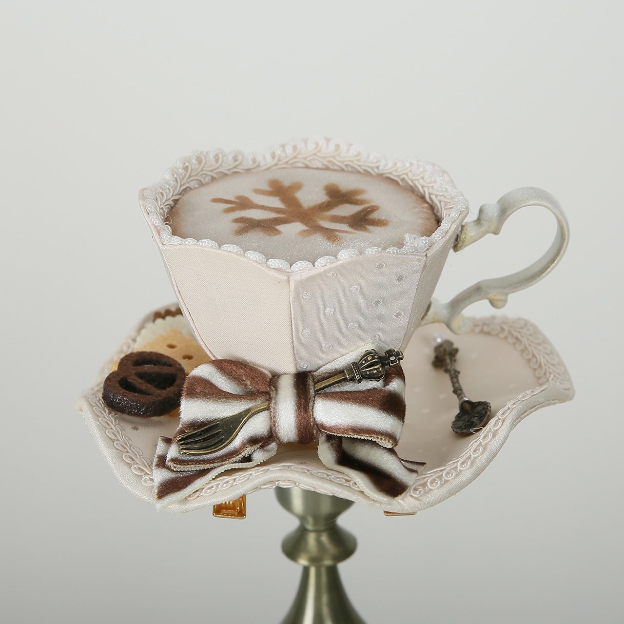 [Brand comment] This cocktail hat is inspired by latte art in a coffee cup. It's playful and feminine, and above all, it has a delicious-looking design! In addition to this latte art design, we also offer a version with rabbit latte art in the cup.