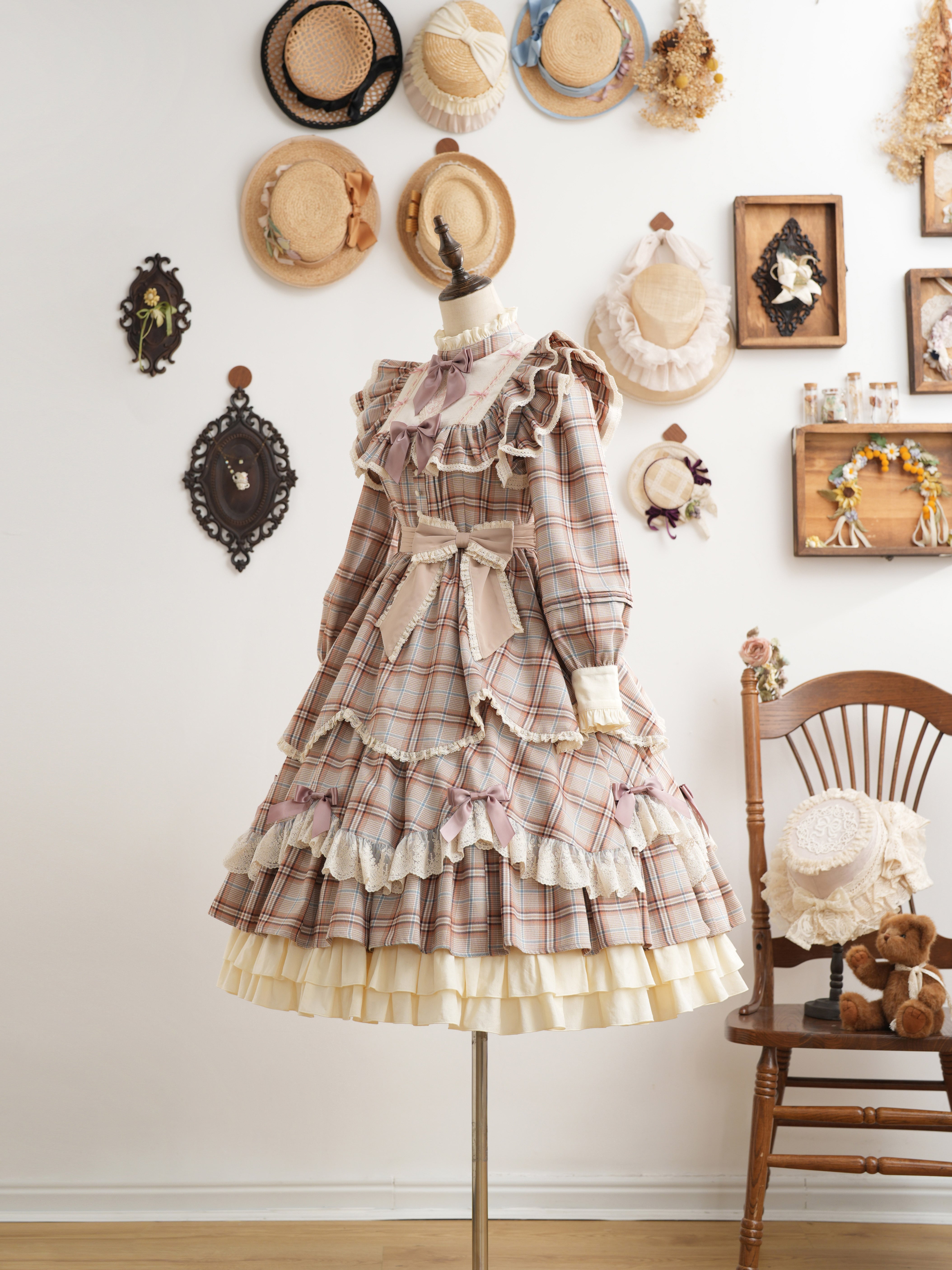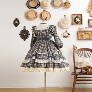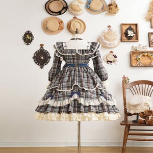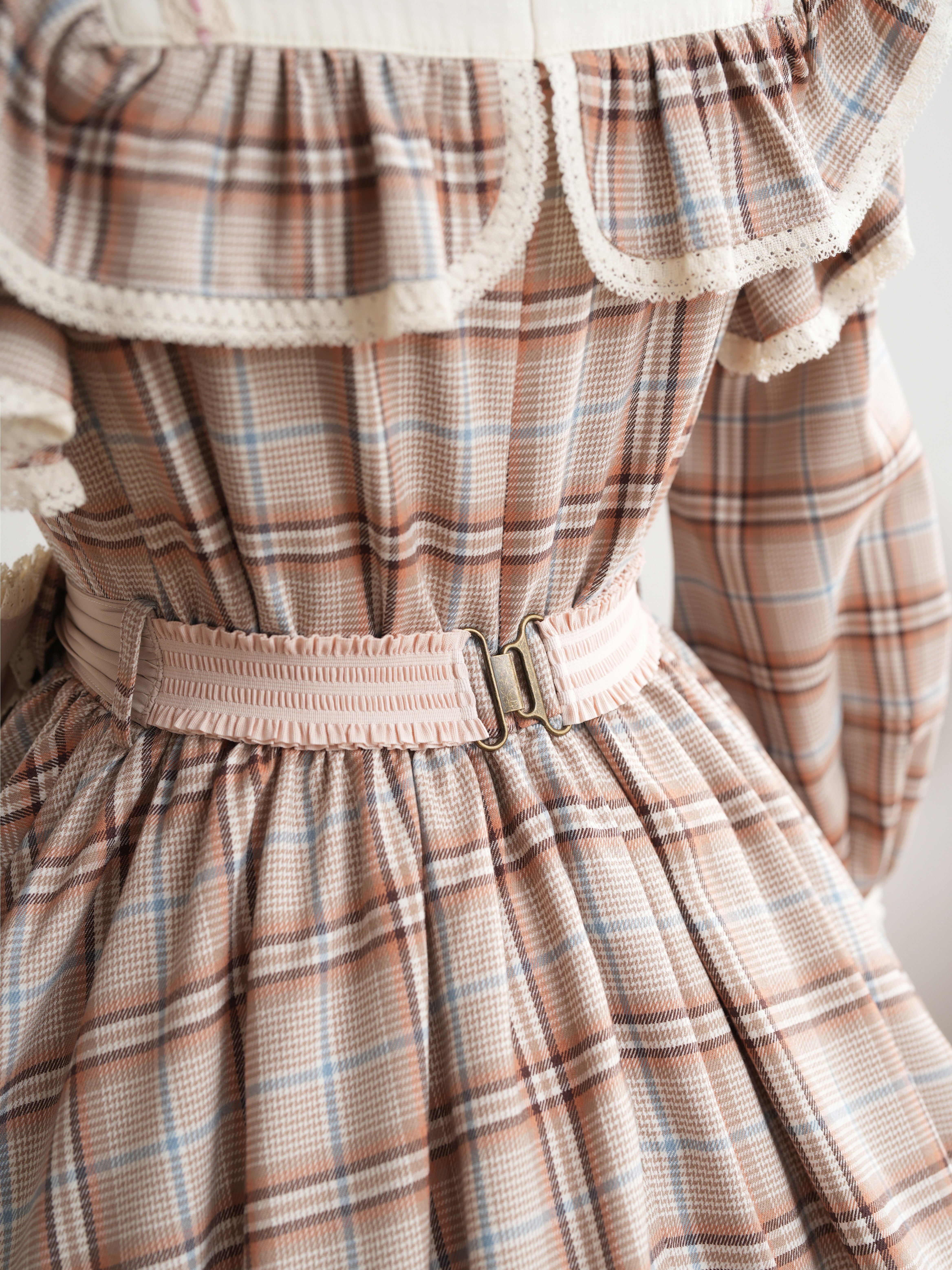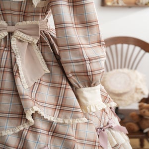 While retaining the cuteness of an antique doll, this checkered dress adds a touch of warmth and loveliness reminiscent of a teddy bear.