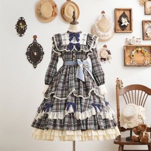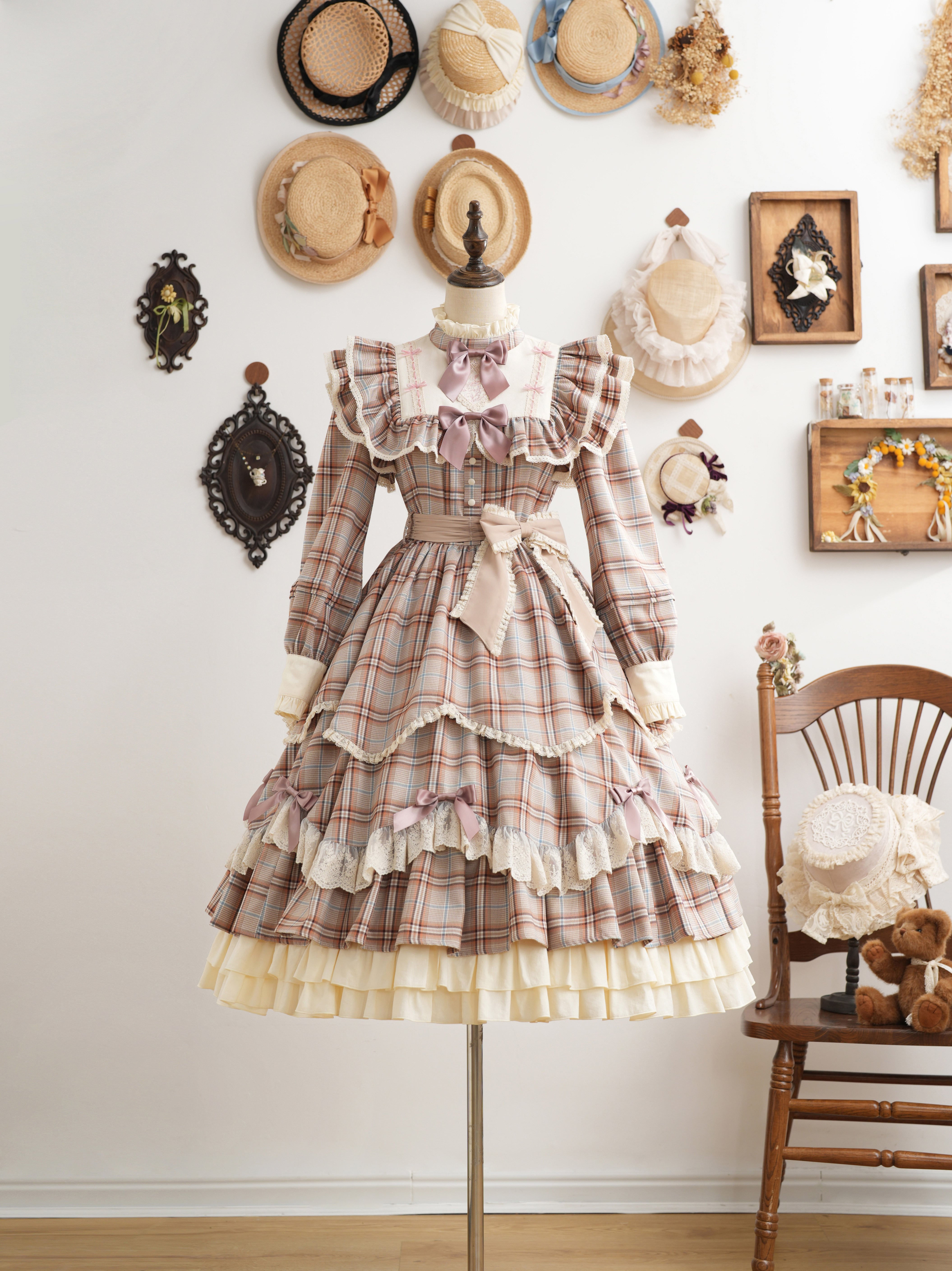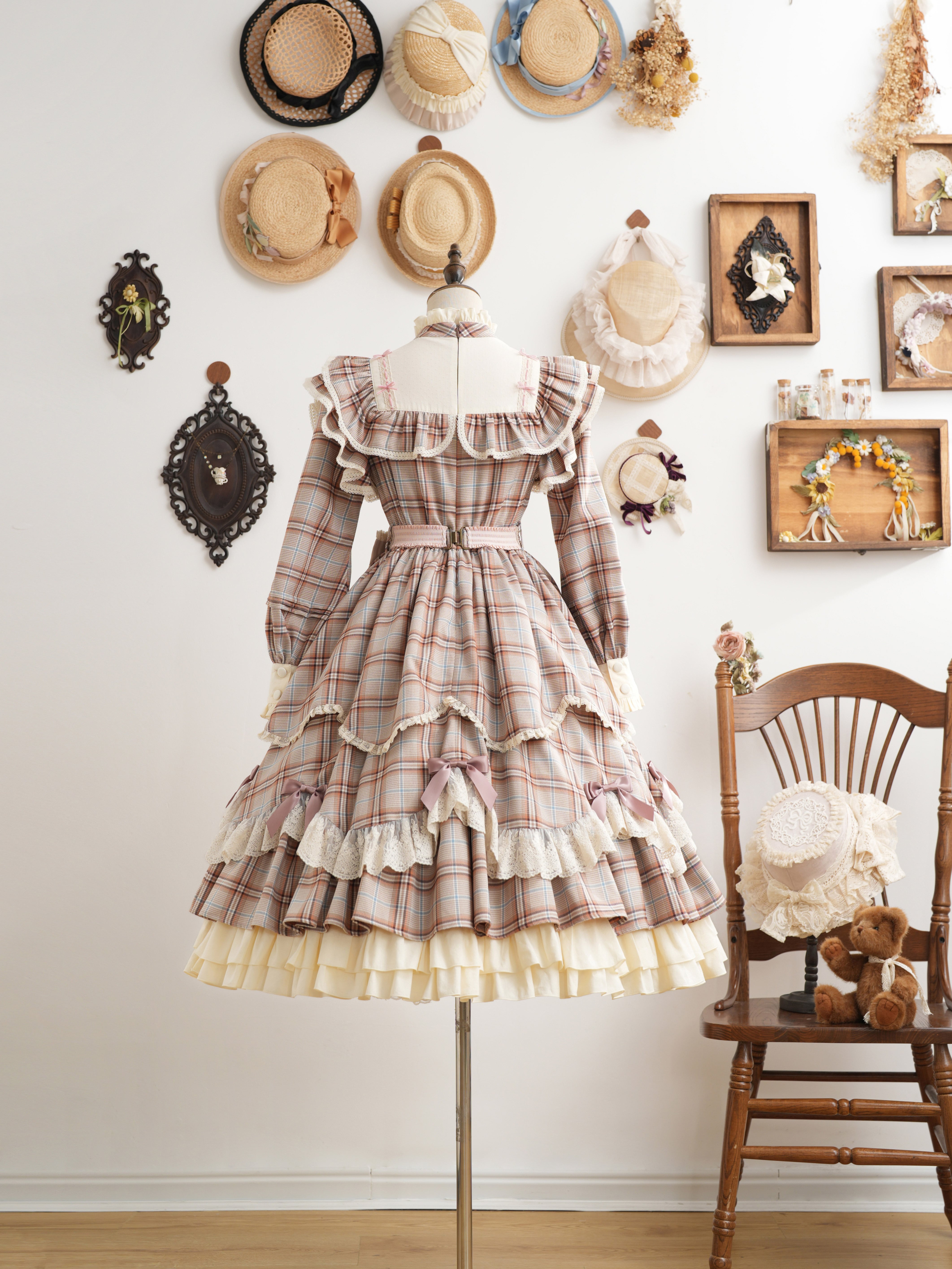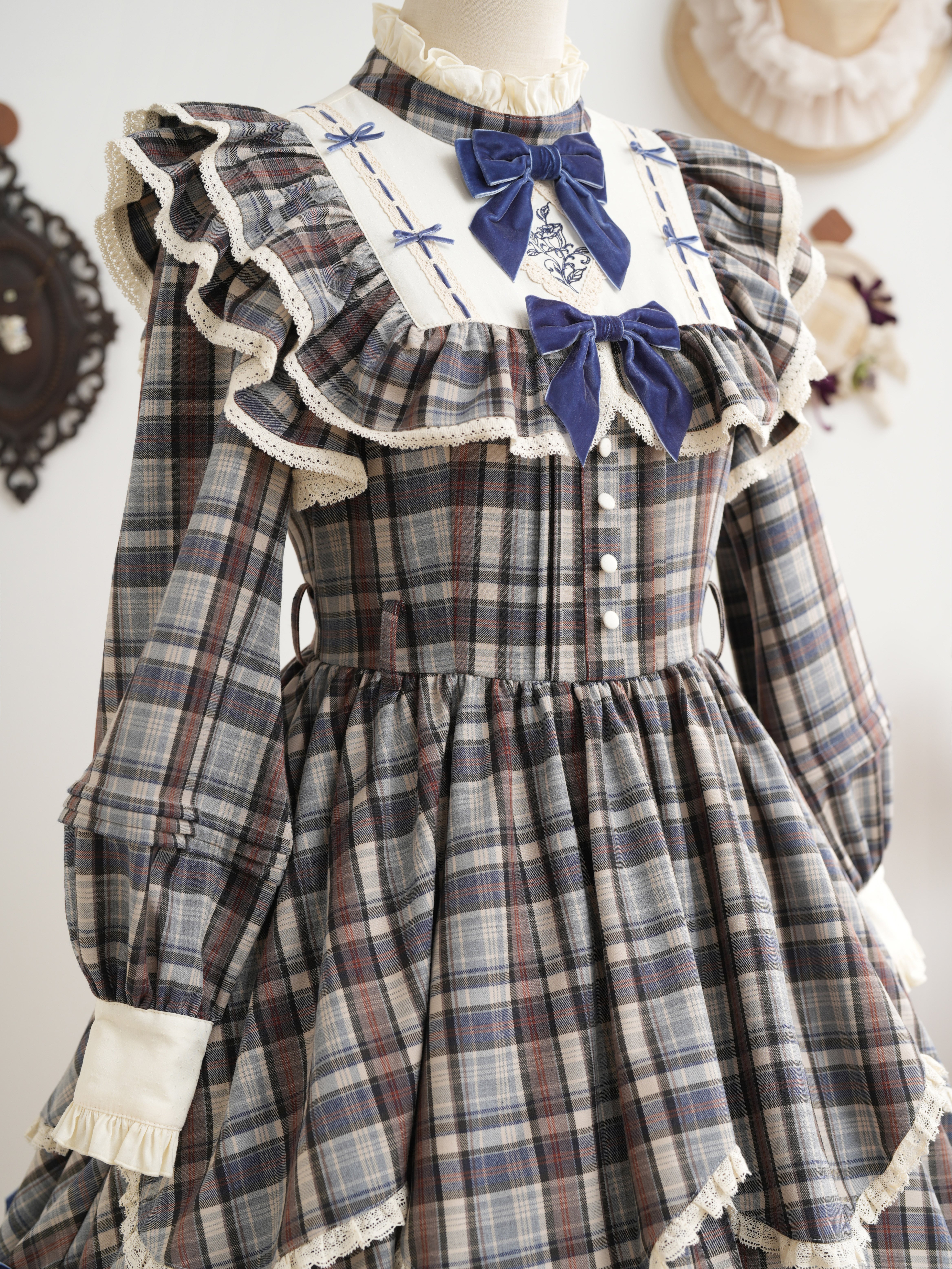 While retaining the cuteness of an antique doll, this checkered dress adds a touch of warmth and loveliness reminiscent of a teddy bear.