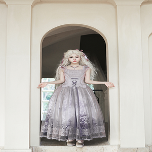 预约 落雨紫藤 片羽lolita 渐变紫花瓣低胯复古裙