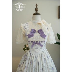 - This elegant skirt features a vintage feel with lace design on the chest and two butterfly bows with pearl pendants in the middle.