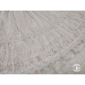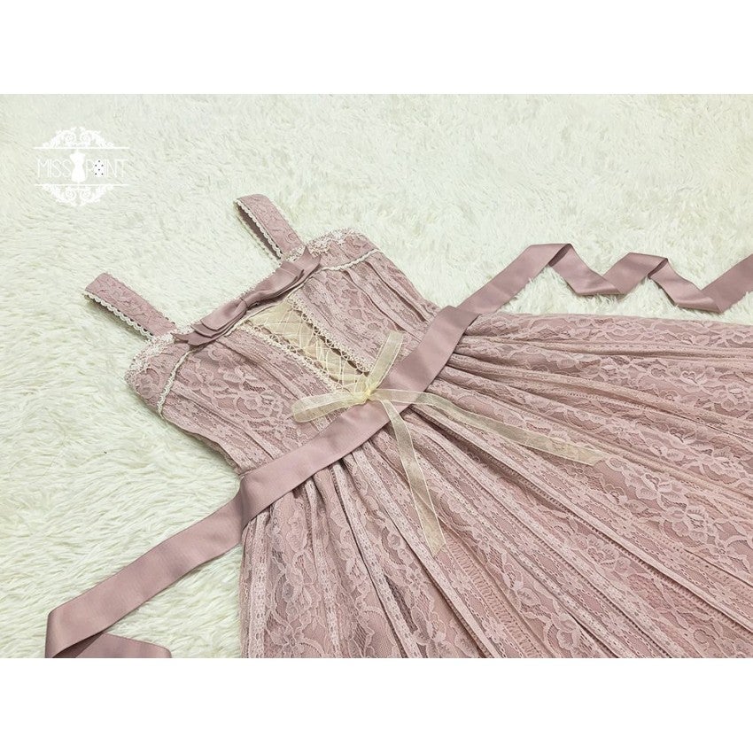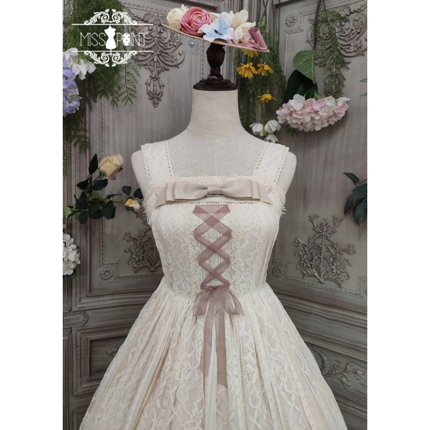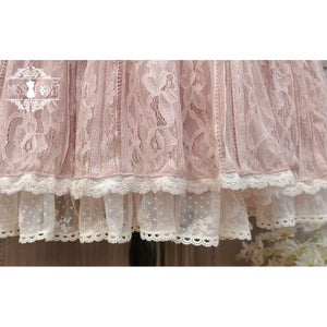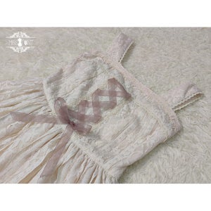 Features: It features in lace material, ribbon lace-up front, ribbon bow on the bust, high waist, and lace shoulders. Very beautiful, elegant, and sweet.