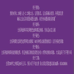 The entire series uses printed fabric and the purple fabric is 100% cotton. The lining is 45-count rayon.