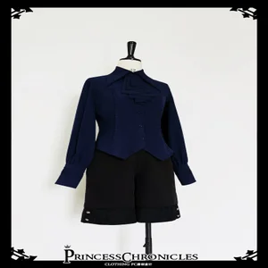 黑與藍復古lolita中世紀基佬口水巾羊腿袖襯衫