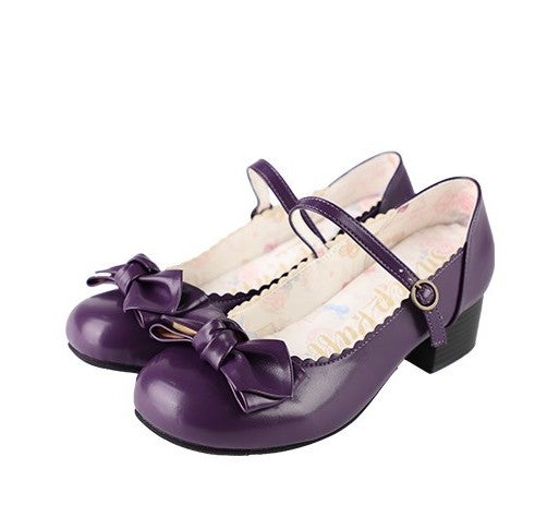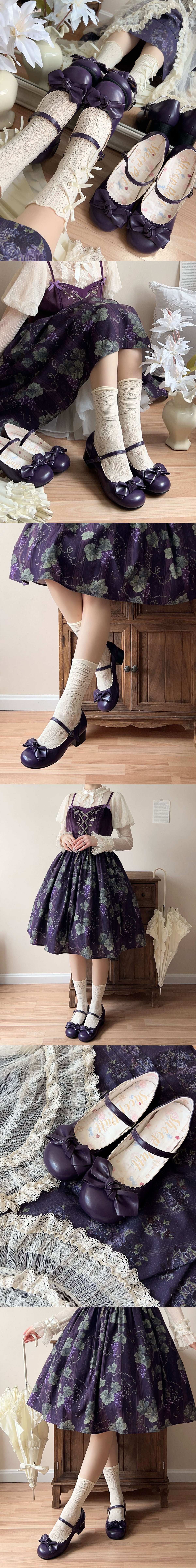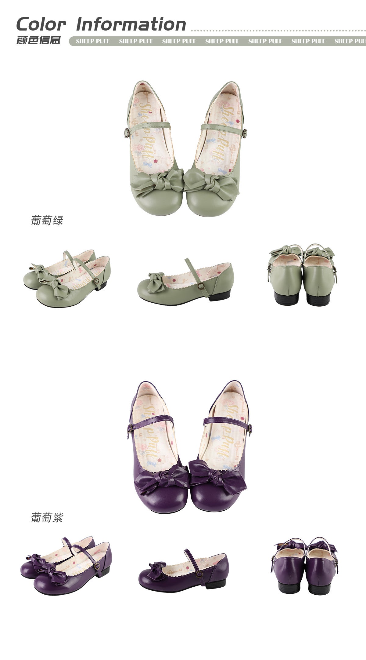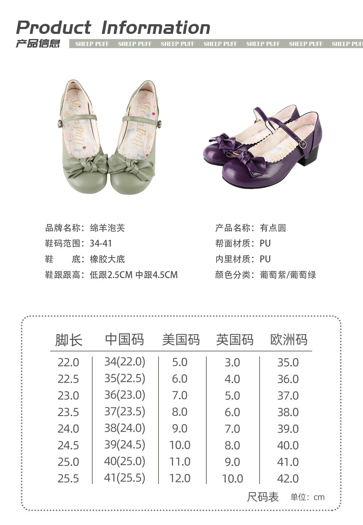 有点圆葡萄色 哑光绿紫绵羊泡芙lolita少女圆头鞋