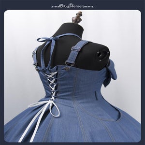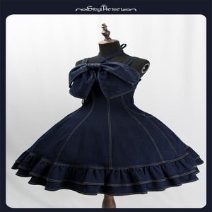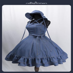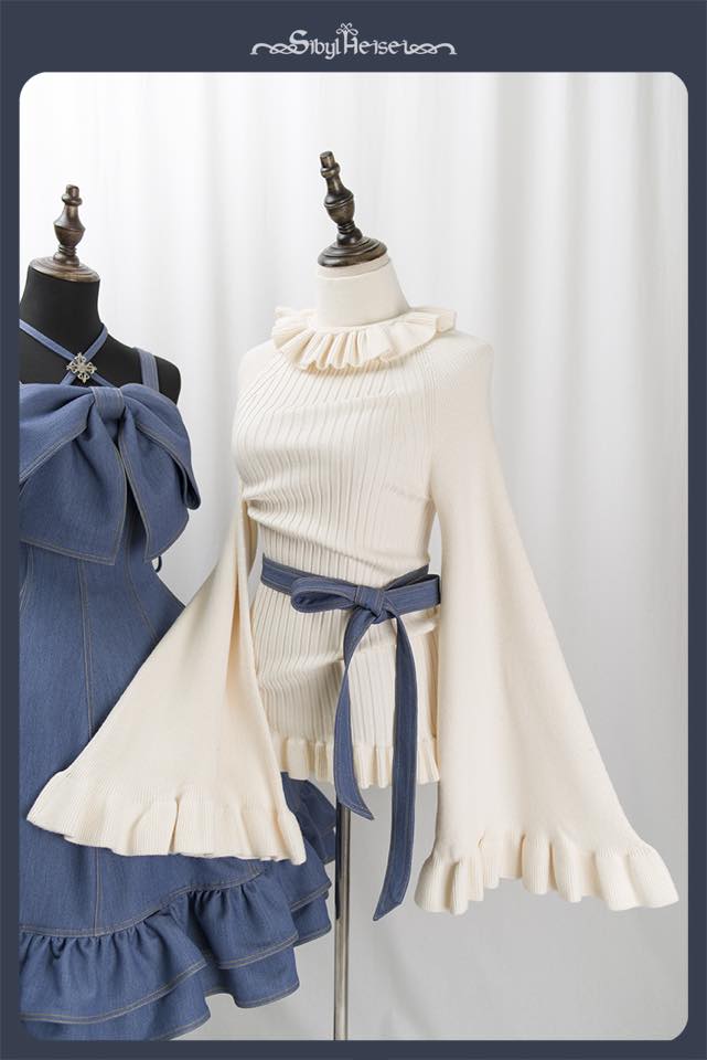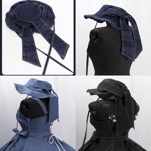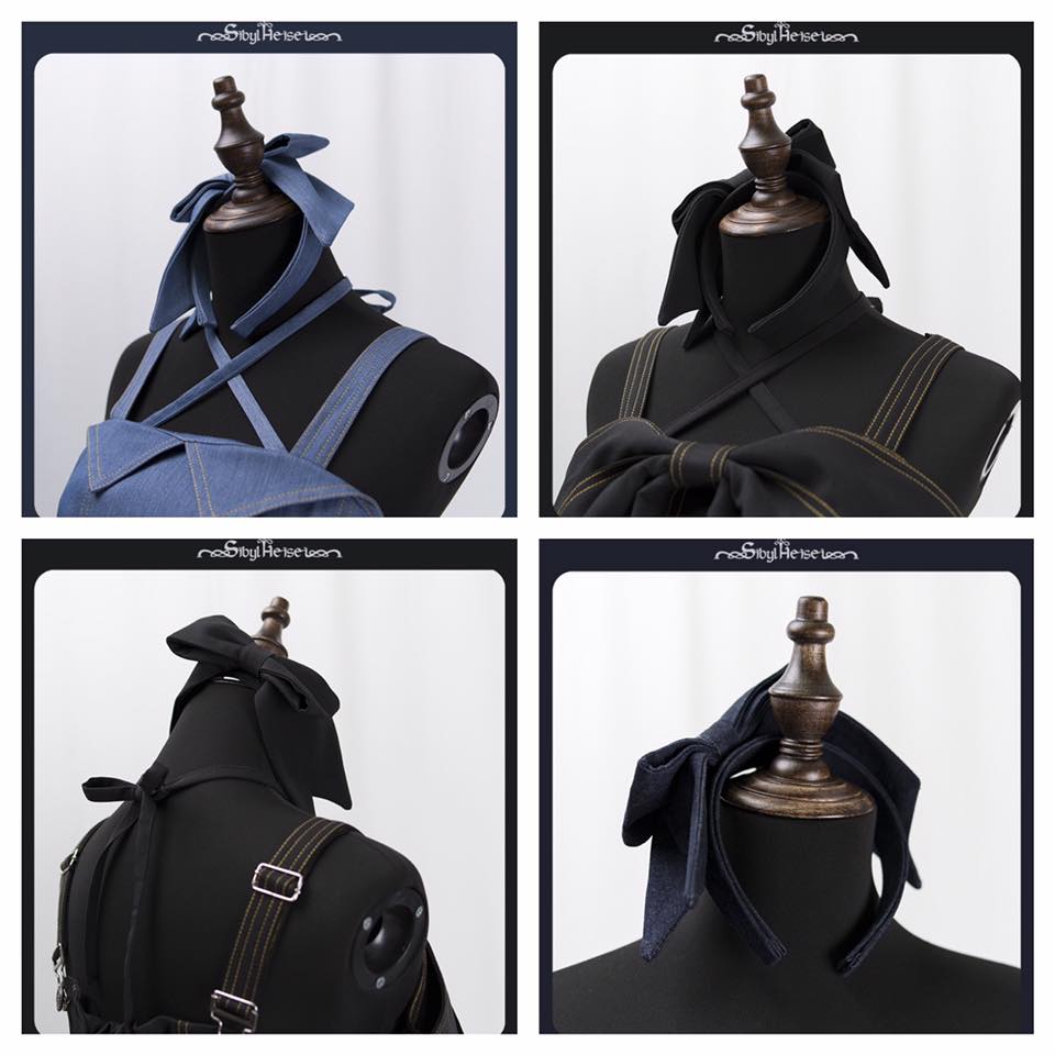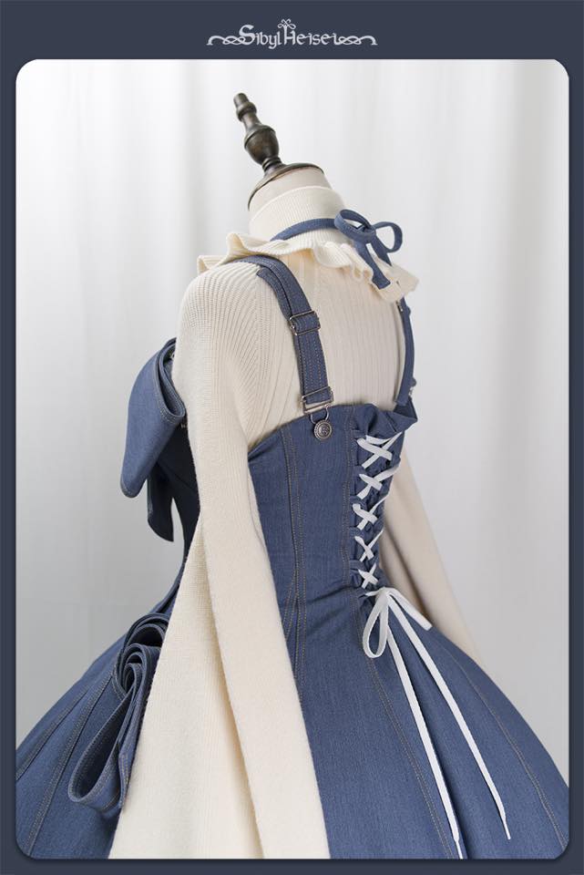 JSK 468 CNYDenim fabric version:navy and blackRT(faux denim)fabric version:blue and blacksweater 168 CNY kc 68 CNY hat 98 CNY brooch 38 CNY brooch+chain=sweater chain 58 CNY