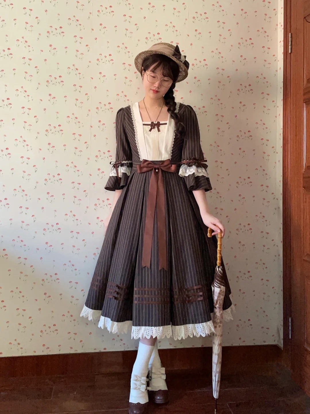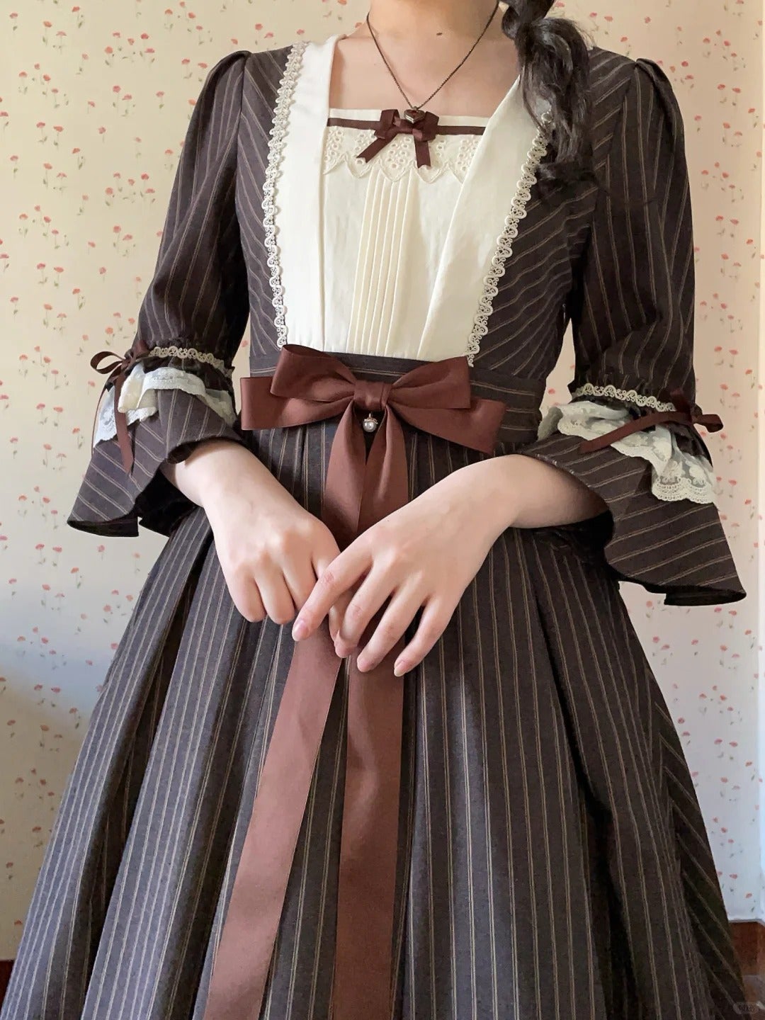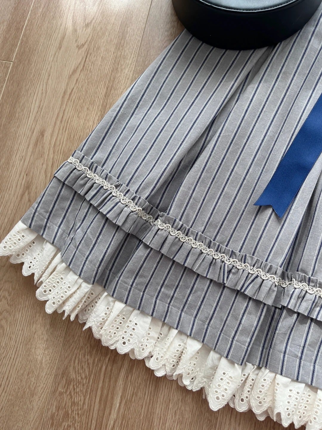 Dark Brown Stripe (with milk tea-colored stripes): 60% Cotton, 35% Polyester, 5% Linen | Grey-Blue Stripe (with navy-colored stripes): 55% Linen, 45% Cotton