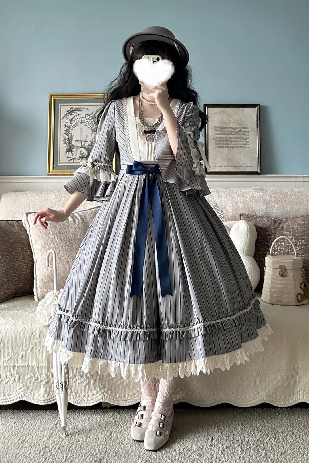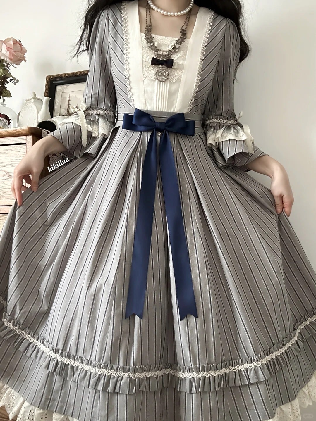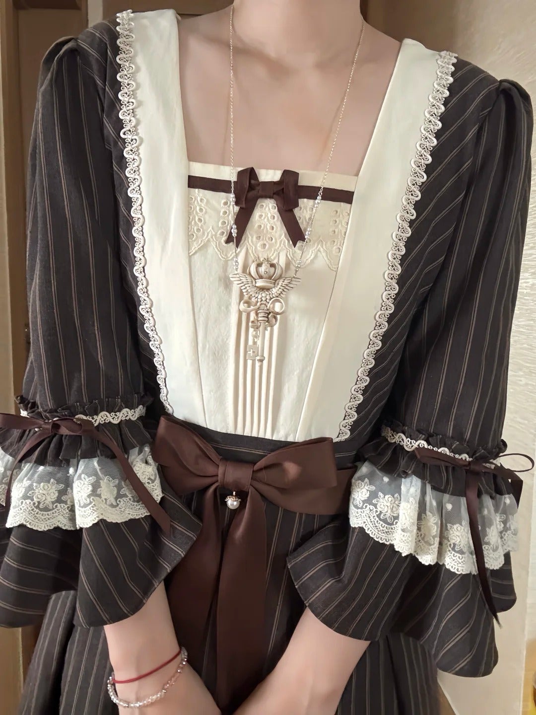 Dark Brown Stripe (with milk tea-colored stripes): 60% Cotton, 35% Polyester, 5% Linen | Grey-Blue Stripe (with navy-colored stripes): 55% Linen, 45% Cotton
